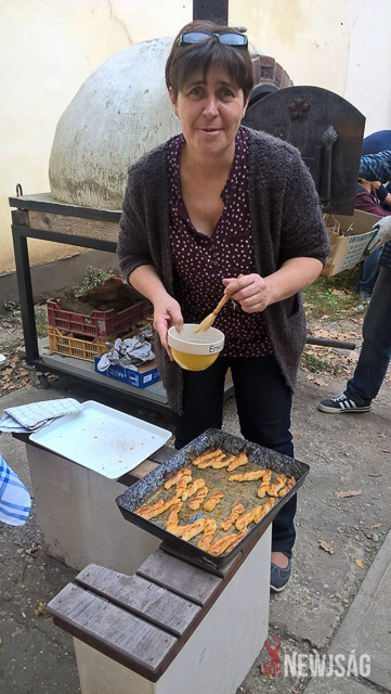 Köszönjük Fulajtárné Böbe néninek, hogy megismerkedhettünk a kalácssütés fortélyaival és köszönet a tűzmesternek, Robi bácsinak.
