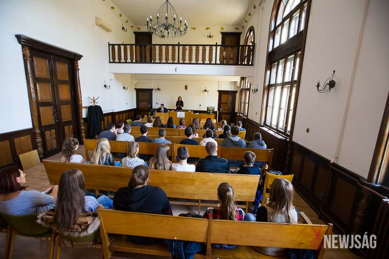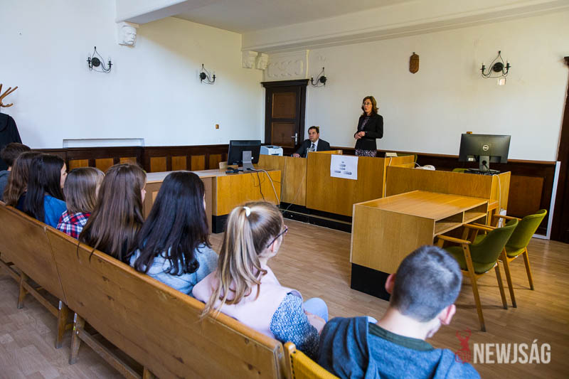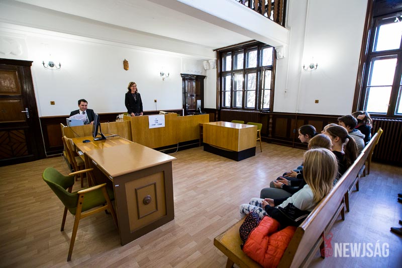 – Kiemelt célja az, hogy az állampolgárokat, és legfőképpen a fiatalabb korosztályt közelebb hozzuk a bíróságokhoz, bemutassuk nekik, hogy hogyan épül fel a bírósági szervezetrendszer, kik dolgoznak a bíróságokon, bemutatjuk azt, hogy az állampolgároknak milyen alapvető jogai és kötelezettségei vannak, illetőleg jelen eljárás keretében majd néhány szót fogtok arról is hallani, hogy hogy néz ki egy tárgyalóterem, kik dolgoznak, kik vannak jelen a teremben, és mi történik egy polgári eljárás során – tájékoztatta a padsorokban ülő diákokat dr. Dani Dóra.