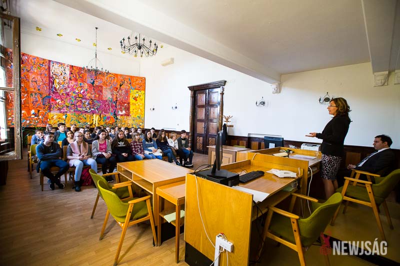 Dr. Dani Dóra, a Szarvasi Járásbíróság elnöke köszöntötte a diákokat, aki elmondta, hogy egy uniós kezdeményezésre minden év októberében megrendezik ezt a nyílt napot.