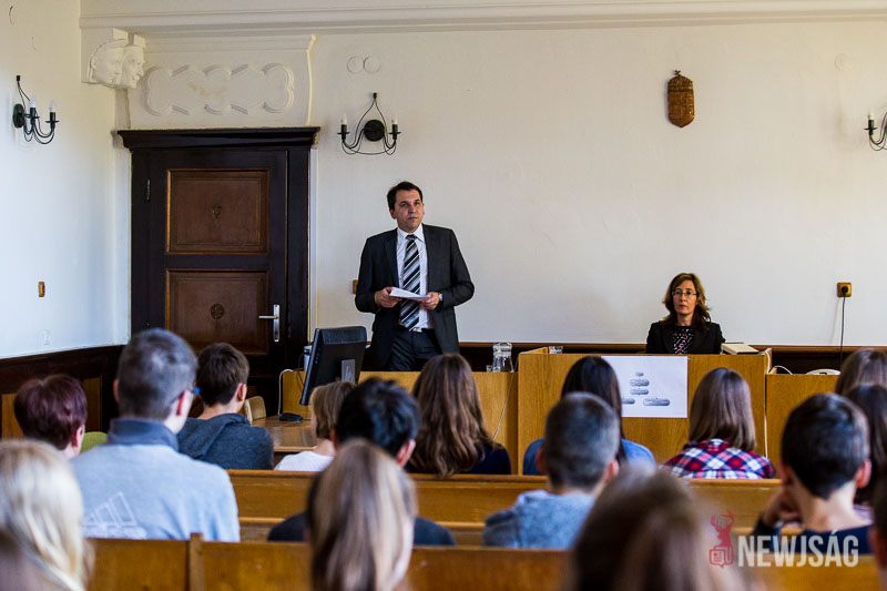 A bírósági szervezetrendszer felépítéséről, az ügyek legfontosabb ismérveiről, szabályairól, első sorban a polgári ügyekre koncentrálva, illetve mi zajlik a tárgyalóteremben dr. Hegedűs Norbert bírósági titkár adott tájékoztatást a fiataloknak.