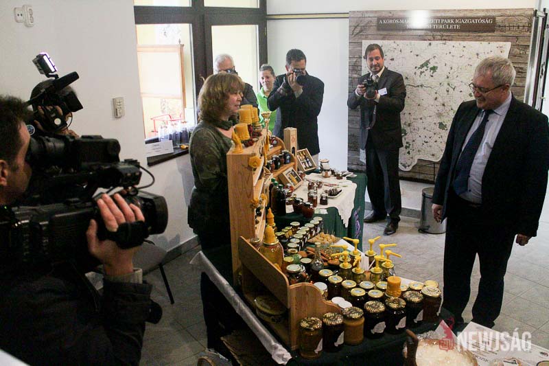 A látogatóközpont előcsarnokában a Körös-Maros Nemzeti Park által kínált végjegyes termékeket lehetett megkóstolni, egyebek mellett mézet, juhsajtot és térségben egyre nagyobb ismertségre szert tevő túzok sört.