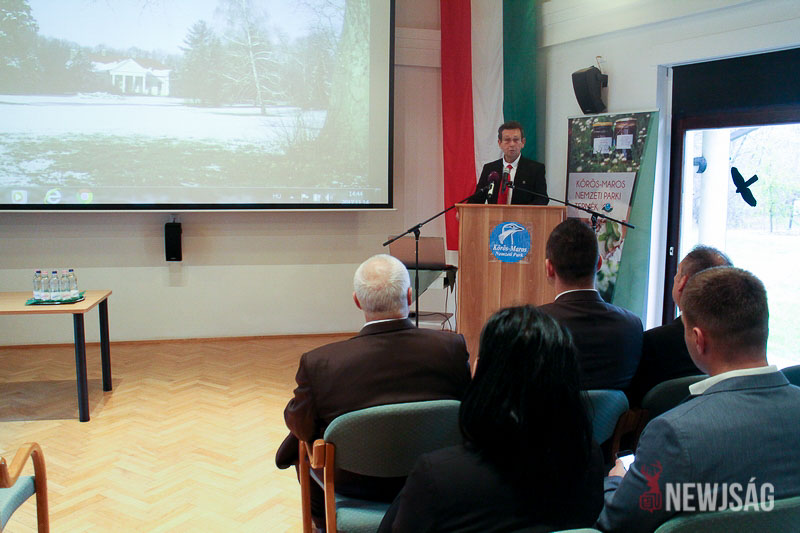 Rácz András környezetügyért felelős helyettes államtitkár előadásában ismertette, hogy Magyarország a nyugat-európai országokhoz képest nagyon előnyös helyzetben van. Területének egyharmada ugyanis természetközeli állapotban maradt meg, 9 százaléka védett, 21 százaléka Natura 2000-es terület. A 10 nemzeti park 300 ezer hektárnyi területet kezel, felét több mint kétezer bérlőnek adják ki használatra.