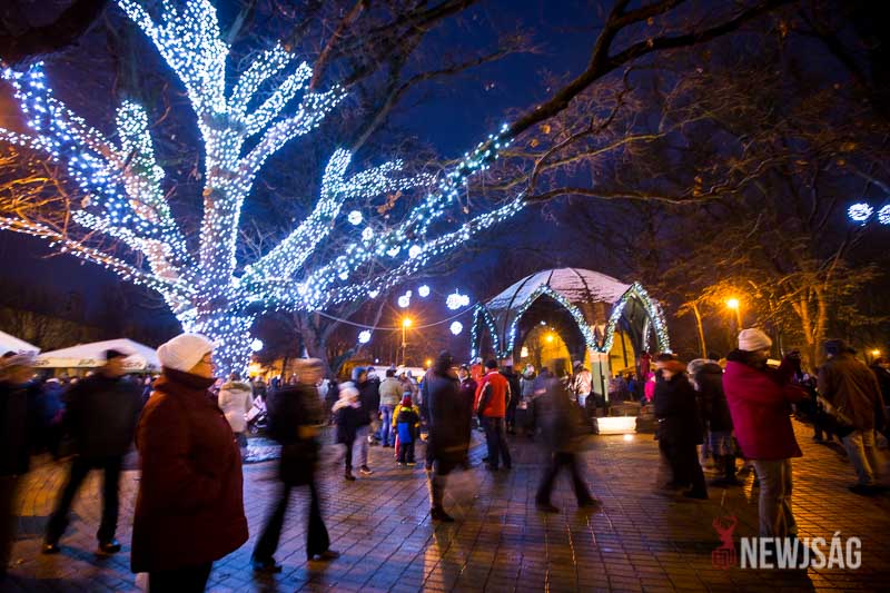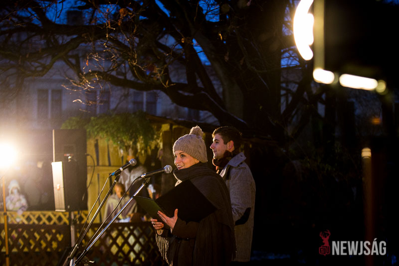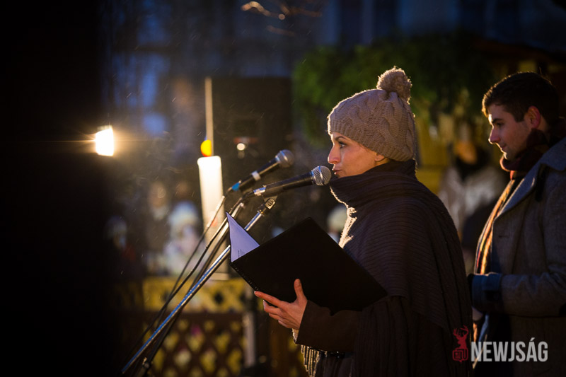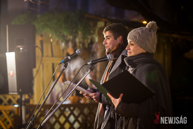 Leesett az első hó, de szomorú, hogy nem marad meg, állapította meg Csasztvan András, a Cervinus Teátrum ügyvezetője a Szent Klára római katolikus templom előtt, a betlehemi jászolnál vasárnap délután. Miközben felgyúltak az ünnepi fények, Bardon Ivett és Polák Ferenc dalos-verses adventi válogatását hallgathatták meg az érdeklődők.