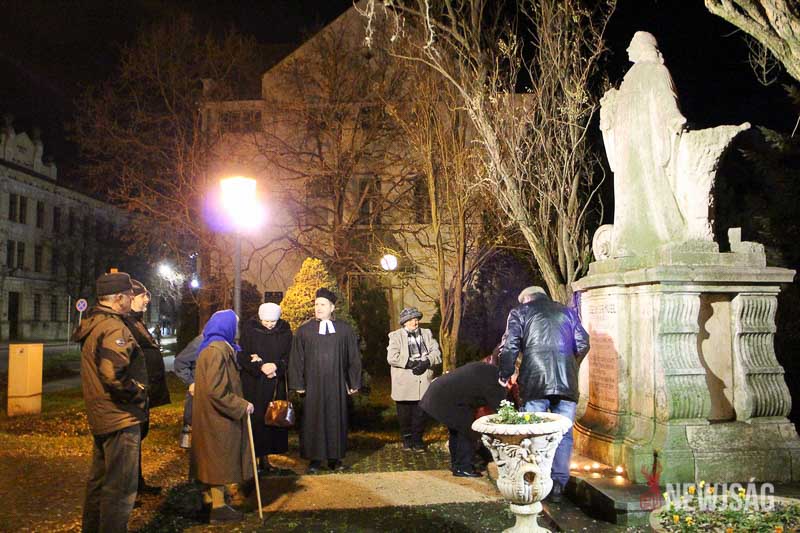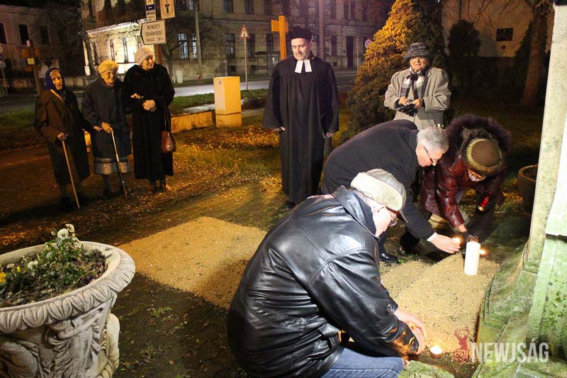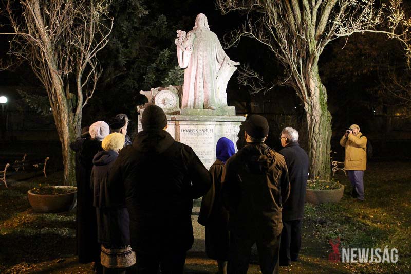 Az istentiszteletet követően a résztvevők egy-egy mécsest helyeztek el a Tessedik szobornál, ahol meglepetésként Szuhaj György legújabb alkotása várta őket. A magát vizuálpegagógiai szakmunkásnak aposztrofáló művésztanár téglalapot formáló búzamagokat szórt az emlékmű elé, amelynek közepébe egy gyertyát helyezett.