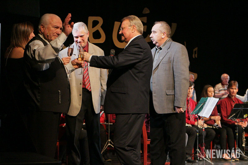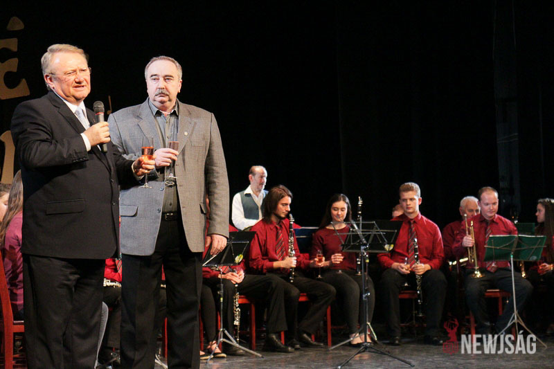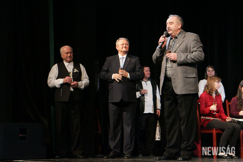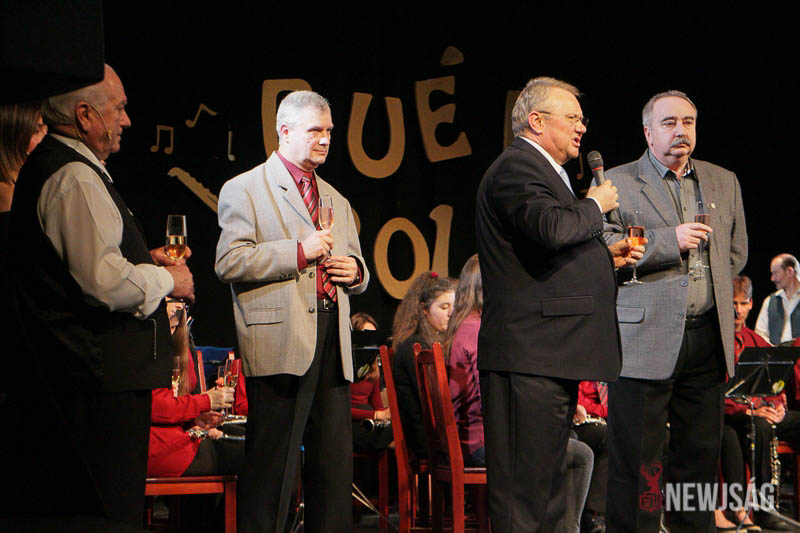 A koncert latinos dallamokkal zárult, majd a színpadon több köszöntő hangzott el. Szabados-Tóth Gábort, Csasztvan Andrást és Mótyán Tibort követve az önkormányzat nevében Földesi Zoltán vezető főtanácsnok köszönte meg az emlékezetes estet, kitekintve pedig elismeréssel szólt a városban működő, kiemelkedő kulturális életről is. Zárásként összecsendültek a pezsgős poharak, amelyek remélhetőleg egy sikeres, boldogabb újesztendőt vetítettek előre.