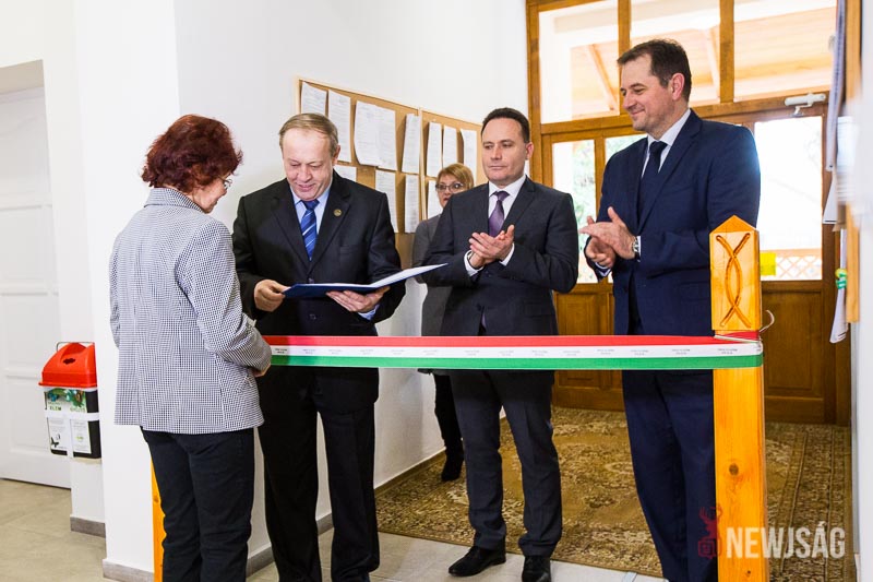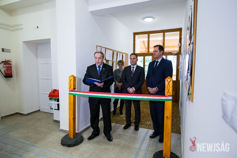 Utolsóként Bánki Álmos, a kivitelező HUNÚT Kft. ügyvezetője mondta el, milyen munkálatok zajlottak az épületen. Gyakorlatilag minden megújult a járólapoktól a mennyezeten át a fal- és födémszigetelésig, a fűtéstől a nyílászárókon át a tetőn elhelyezett napelemekig, a vízvezetékektől az elektromos hálózatig.
