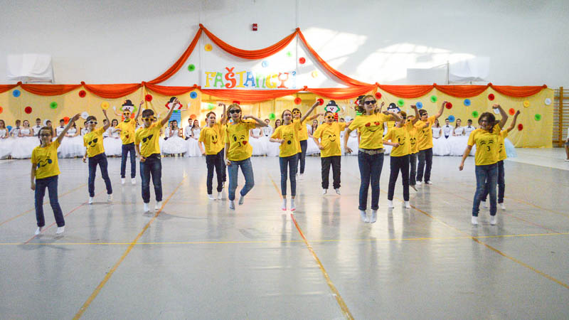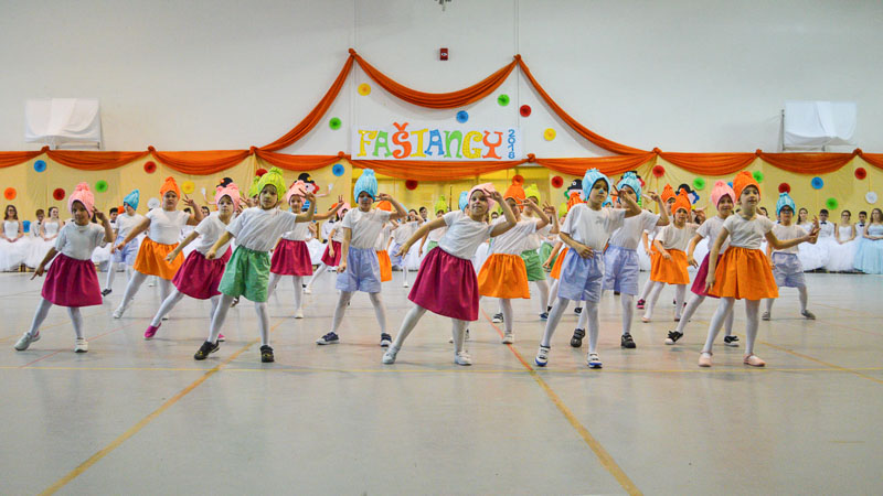 Húshagyókedden túl, a nagyböjt végén innen, pontosan február 15-én, azaz csonkacsütörtökön a szlovák iskola téltemető vigasságot tartott. A tavasz és a tél küzdelmének szimbolikus megjelenítése aznap kora reggel óta zajlott az intézmény falai között. Az óvoda, az iskola, a pedagógusok és a szülők is mind a tavaszvárás legősibb ünnepére készültek már napokkal, hetekkel korábban. Ilyenkor jelmez varrás és próba váltogatták egymást, közbe iktatva egy kis fánksütést. Télűző szándékkal a legkisebb maskarások – az óvodások végigjárták az iskola folyosóit horgász-pecás óvó néni kísérőikkel és babonából akkora zajt csaptak, amekkorát csak bírtak. A kedves anyukák és apukák szendvicsgyárat nyitottak és költöztető hadműveletbe kezdtek. Eközben az iskola osztálytermeiben 187 egyéni jelmezes okozott karneváli hangulatot. A program az Alkotmány utcai sportcsarnokban folytatódott, ahol a nyolcadik osztályos tanulók keringője nyitotta meg a műsort. Kifogástalan öltözékben, elegáns léptekkel úsztak a zene hullámain az ifjú hölgyek és urak. Őket a mindig vidám első osztályos trollok követték, majd a második évfolyam hófehér, bűbájos kis liba képviselőit Lúdas Matyi nevelgette – terelgette. Ez után a Pizzéria Fantastica gyors futárai robogtak a színre gombás és sonkás olasz tésztájukkal a 3.a és 3.c osztályosok előadásában. Fagyos hangulatot nem, de megannyi szép mozdulatot hoztak a színpadra a 3.b osztály jéghercegnői és jéghercegei. Őket a tütübe öltözött 4.a-s balett táncosok és balerinák kecses mozdulatai követték. Majd érzelmeket vonultattak fel a fürge, vidám, sárga 4.c-s emojik. A cicák és az egerek örök harcának legújabb fordulatait nézhettük meg az 5.a és az 5.b osztályosok közvetítésében. Önállóan összeállított, lendületes, mozgalmas tánc koreográfiát mutatott be a 6.a és a 6.c osztály közösen, majd a 6.b tanulói vánszorogtak mamóka stílusban a táncparkettre, akik magukból kibújva és megfiatalodva lejtették el táncukat. Indiai zene, öltözet és mozgás kultúrát mutatott be magas fokon közös produkciójában a három hetedik osztály. A szülői munkaközösség oszlopos tagjai egy bulizós szombat estét elevenítettek meg a vörös hajú sráccal, majd két kézzel szórták az édességet. Az iskola pedagógusainak vidám mini jeleneteit utolsóként konferálta színpadra Podani Anikó és Urbancsok Anita „műsorvezető”. Valamennyi előadást a nézők vastapsa koronázta. A nézők között köszönthették bemondóink Babák Mihály polgármestert, Závoda Ferenc megyei képviselőt, Földesi Zoltán tanácsnokot, Szebegyinszki Erzsébet és Frankó Pálné nyug. igazgatóhelyetteseket, Szigeti Erika és Kondacs Jánosné nyug. pedagógusokat, valamint a szülői választmány tagjait. A nyolcadikosok hálája Nyemcsok Mátyásné igazgatónőt, Medvegy Pálné tiszteletbeli igazgatónőt, valamint a keringőt betanító Sinkáné Nyemcsok Erika tanárnőt illette. A fergeteges programot követően az igazgatónő megköszönte valamennyi szervezésben és kivitelezésben segítőnek a munkáját. A tombolasorsolást megelőzően közös zumbázásra, alapos has-kar-láb rázásra adott lehetőséget Piros Renáta tanítónő átmozgató táncórája. Ezen a napon együtt vigadt az iskola apraja-nagyja, küzdött Konc király és Cibere vajda. Harcuk eredményét a közelgő időjárás hamarosan megmutatja.