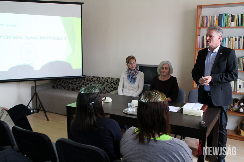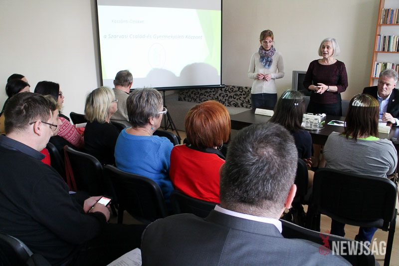 Tóth Tamásné intézményvezető előadásában részletezte az intézmény felépítését és dolgozói létszámát, és kitért a tavalyi év közepétől elindult új szolgáltatásra, az iskolai és óvodai segítő tevékenységre is. Erre a célra a központ 40 millió Ft-ot nyert az Emberi Erőforrások Minisztériumától, lehetővé téve, hogy két főállású szakemberrel és pszichológus bevonásával az oktatási intézményekben nyújtsanak segítséget. Szeptembertől ezt a munkát kötelezően előírt feladatként végzik, immár megduplázott munkaerővel.