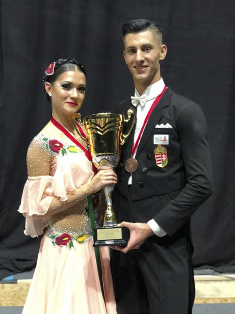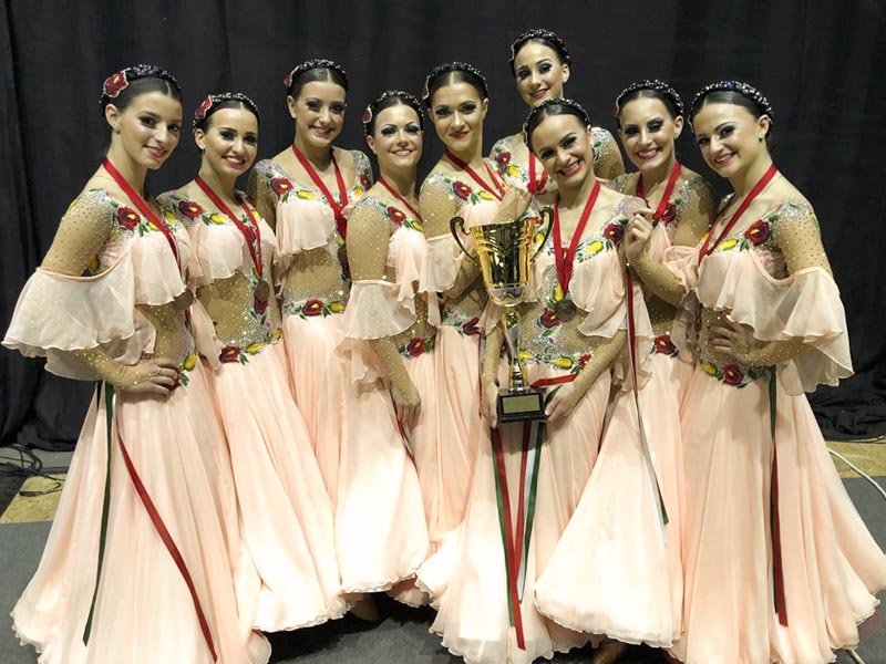 – Az első év mindig olyan kezdetleges, a harmadik évre érik meg igazán a koreográfia. Közben persze sok mindent változtattunk rajta, nagyjából a fele teljesen kicserélődött. A legfontosabb persze maradt: az 5,5 perces műsorban mind az öt standard táncnak meg kell jelennie. A címe Hungarian Spirit, vagyis magyar virtus volt. Magyaros zenével, magyaros lépésekkel volt teletűzdelve, amivel szerettük volna ezt a szellemiséget átadni a közönségnek – teszi hozzá Betta.