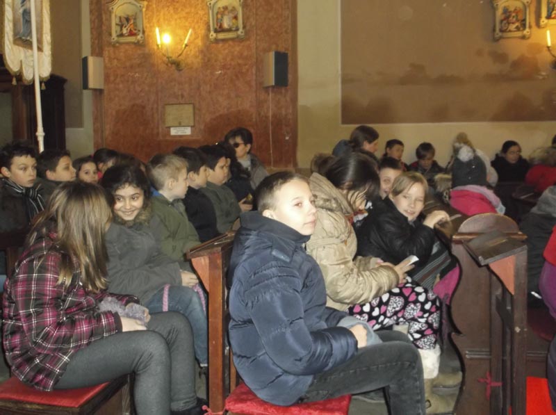 A napot most is a közeledő ünnephez méltó szertartással nyitottuk és zártuk. Seidl Ambrus plébánosunk tartotta ezeket az alkalmakat itt az iskolában, és a Szent Klára templomban.