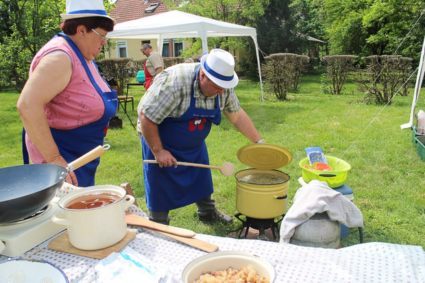 Az idei főzőverseny az előzőeknél valamivel csendesebbnek bizonyult. A megszokott 8-10 csapat helyett ezúttal csak négy közösség rugaszkodott neki a magyaros ételek elkészítésének, igaz, ők valamennyien egy népes tábort láttak vendégül. A legnagyobb létszámot a Csabacsűdiek Baráti Köre Hagyományőrző Egyesület és a Csabacsűdi Szlovák Önkormányzat tagjai tették ki, akik ennek megfelelő adagokban is gondolkoztak.