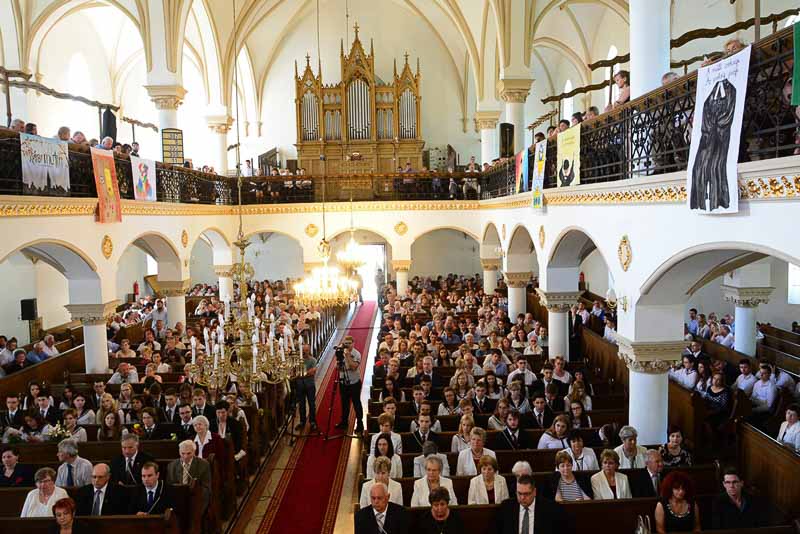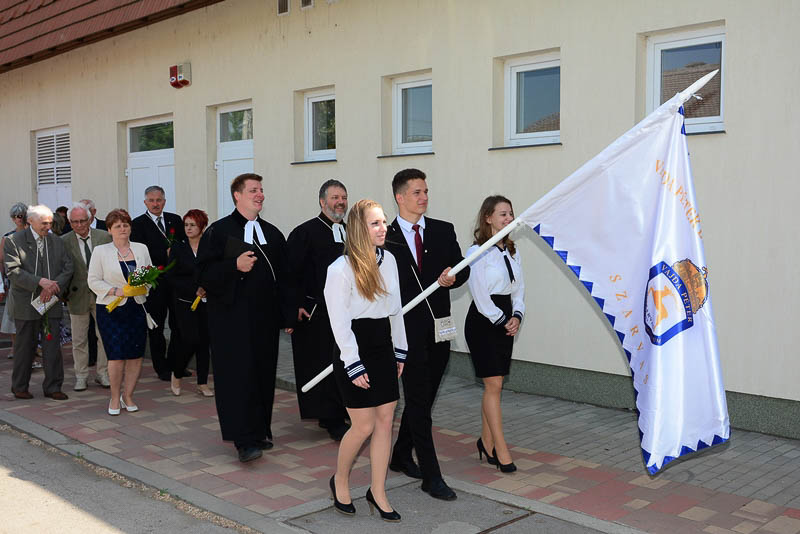 A ballagás napján, május 5-én, reggel 6-tól életre kelt a Vajda Péter Evangélikus Gimnázium, az alsóbb évesek díszítették az épületet, különös gonddal a 12.-es osztálytermeket. A ballagási tarisznyák átadása volt az első ünnepélyes pillanat, hiszen az átadó 11.-es diákok is átérezték ennek jelentőségét. Majd a feldíszített ebédlőben sorakoztak fel a végzős diákok, ahol Zahorecz Pál iskolalelkész indította őket útjukra, amikor is utoljára járták végig a folyosókat és a tantermeket. A gimnázium épülete előtt a névadónak, Vajda Péternek adóztak tisztelettel felidézve néhány gondolatát és megkoszorúzva ott kiállított szobrát. A végzős osztályok az idei tanévben is nyomot hagytak maguk után, plaketteket rögzítettek az iskola haranglábján. Ezután a zászlót követve átvonultak az Evangélikus Újtemplomba.