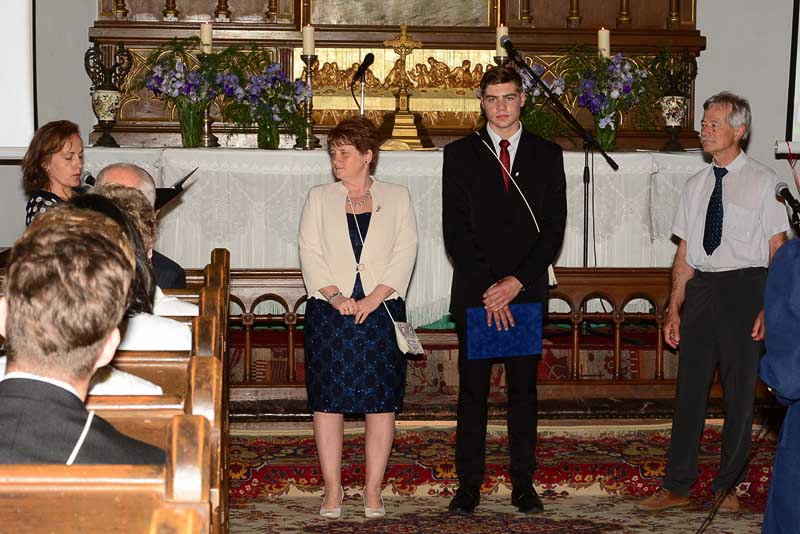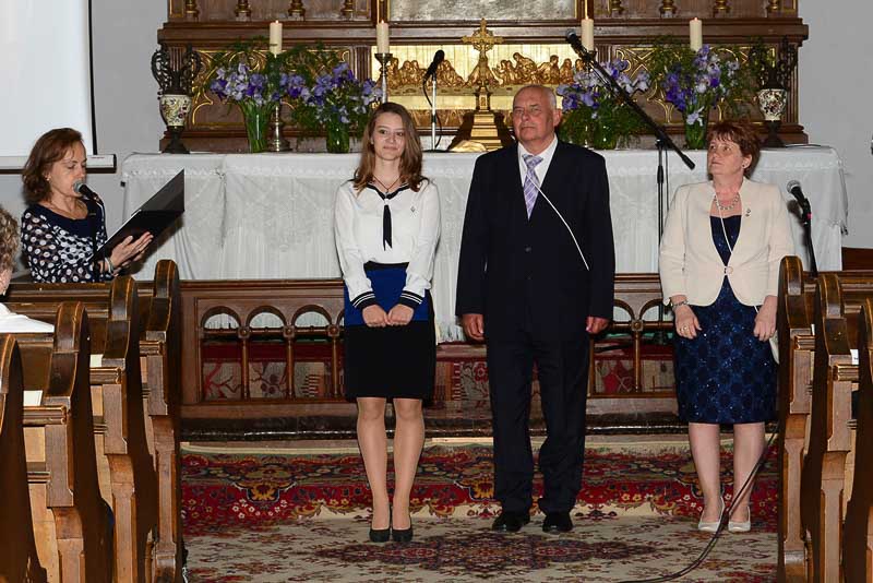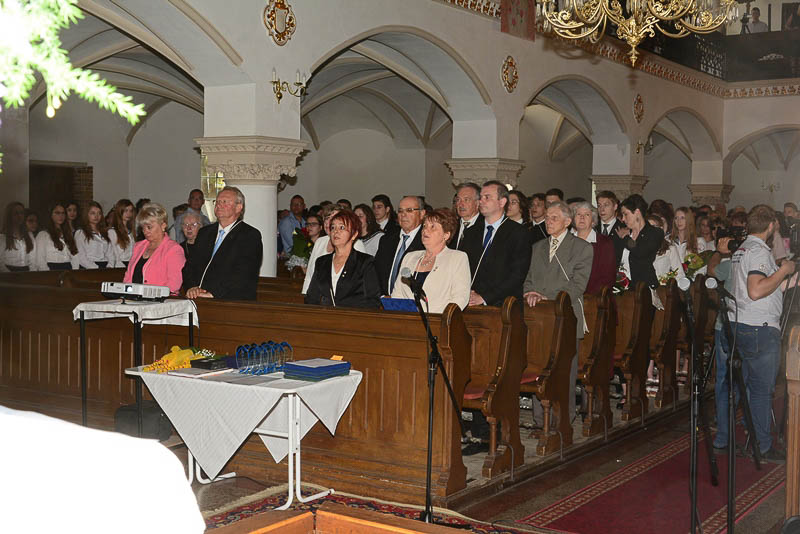 A ballagási istentiszteleten Horváth Z. Olivér parókus lelkész hirdette az igét, majd Hodálik Pál, Szarvas Város alpolgármestere köszöntötte elsőként a végzősöket. Gaál Roland, járási hivatalvezető is elmondta gondolatait a ballagóknak, majd az ünnepi műsor következett, amit az énekkar nyitott meg. Bondor Boglárka 11. C osztályos tanuló saját versét szavalta, amelynek címe Búcsúznod kell volt, majd Kozma Márk 11. B osztályos tanuló köszönt el a ballagóktól az évfolyam nevében. Ezután Mulholland Sadie 12. B osztályos tanuló Simonffy Péter Búcsúdalával, majd Uhljar Janka 12. A osztályos tanuló ünnepi beszédével búcsúzott a végzősök nevében. Az eskü szövegét, amelyben kinyilvánítják a ballagók a gimnáziumhoz való kötődésüket, hogy annak elhagyása után sem feledik azt az értékrendet, amelyet az iskola falai között kaptak, Buzás Martin, 12. B osztályos tanuló mondta elő.