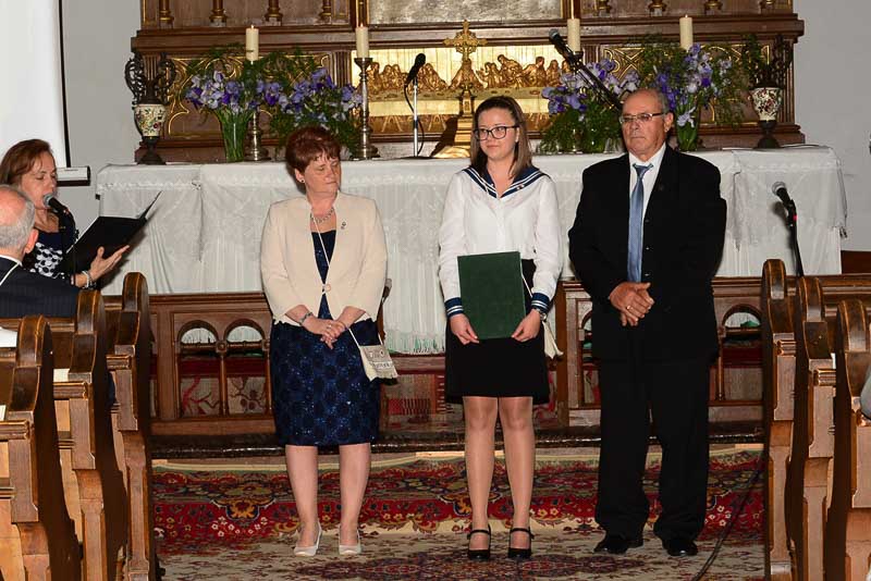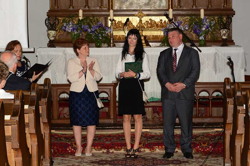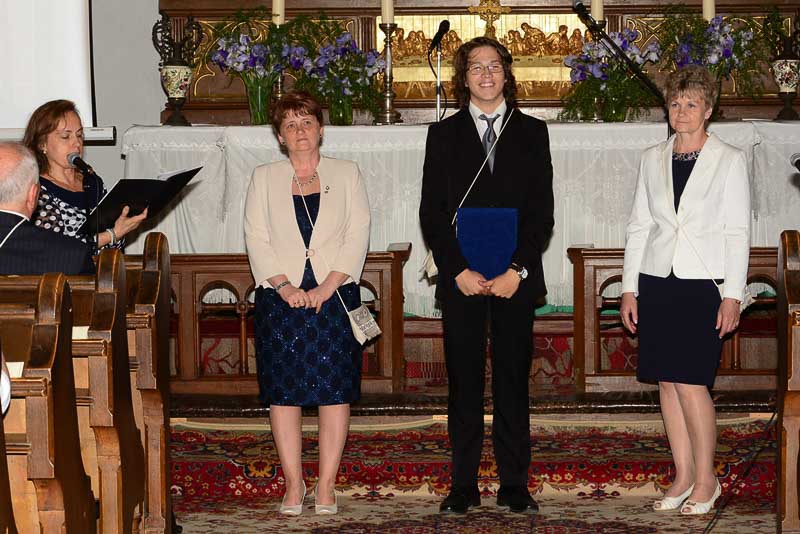 Az ünnepség több megható pillanata után a díjak kiosztása következett. Az idei tanévben a Vajda-díjat Uhljar Janka 12. A osztályos tanuló kapta 8 éven keresztül kitűnő tanulmányi eredményéért, a sportban és a tanulmányi versenyeken elért kimagasló eredményéért. A szintén rangos elismerést, a Benka-díjat Mester Zsófia 12. A osztályos diákunk kapta szintén kitűnő tanulmányi munkájáért és sporteredményeiért, valamint művészeti tevékenységéért. Az ének-zene területén kiemelkedő tanulónak járó Melis-díjat Mulholland Sadie 12. B osztályos tanuló, az id. Oláh Miklós díjat dobogós sporteredményeiért Nagy Béla 12. B osztályos tanuló kapta. A Művészeti díjat kimagasló teljesítményéért Erdős Norbert érdemelte ki a 12. B-ből. Kugyela Flóra 12. A osztályos tanuló két díjat is kapott, az idegen nyelvek tanulásában kiemelkedő eredményei alapján a Gasztonyi – díjat, valamint középfokú angol és két felsőfokú német (ORIGÓ és ÖSD) nyelvvizsgája alapján pedig Mocskonyi József – díjat vehetett át. Misik-díjjal jutalmazták Gubucz Gábor 12. B osztályos tanulót, aki földrajz tantárgyból jeleskedett, Tóth Arián 12. A osztályos tanuló fizika tantárgyból elért eredményeiért Kunos-díjat kapott. A Dr. Nádor Jenő – díjat Dorogi Mónika 12. A osztályos tanuló humán téren tanúsított munkájáért kapta. Wágner Réka 12. A osztályos tanuló Boczkó Dániel díjban részesült szorgalma, illő magaviselete és jó tanulmányi eredménye alapján. Dernovics László képviselő díját Czinkoczki Enikő 12.A osztályos tanuló kapta. Kiemelkedő közösségi munkájáért Diákönkormányzati díjban részesült  Rohony Noémi 12. B osztályos tanuló. A röplabdás végzős lányok és fiúk  – Mester Zsófia, Szabó Csenge, Gyulai Fanni, Lestyán Luca; Kiri Bence, Molnár Gergő, Pálfi Gellért, Nagy Béla, Kalocsai Levente, Erdős Richard – az edzőjükkel, Csilik Attilával együtt emlékplakettet vehettek át a több éven át tartó sikeres versenyzésükért. Kiemelt jutalmat kaptak sikeres sporttevékenységükért Sindel Renáta, Balogh Andrea és Gyulai Fanni, valamint kitűnő tanulmányi eredményéért Csicsely Bianka 12. B osztályos tanulók. Molnár Gergő az iskolai színjátszókörben végzett sikeres tevékenységéért kapott kiemelt jutalmat. Söjtöri –díjat kapott Bondor Boglárka 11.C osztályos tanuló kiemelkedő színjátszó és versmondó tevékenységéért.