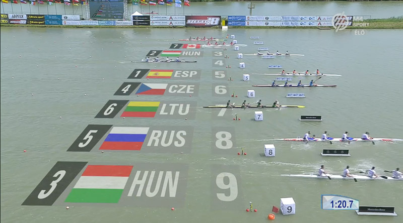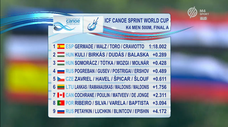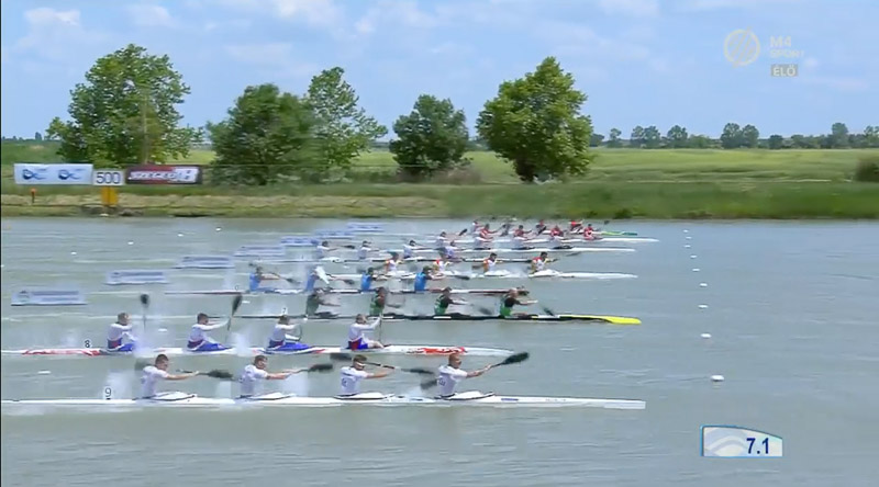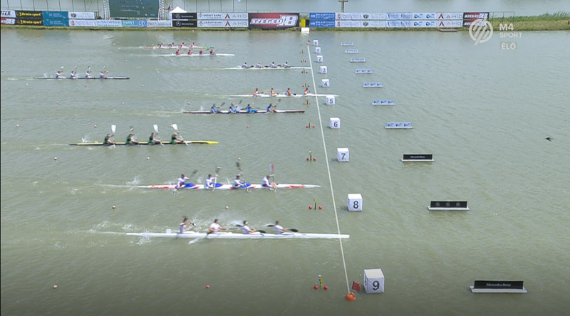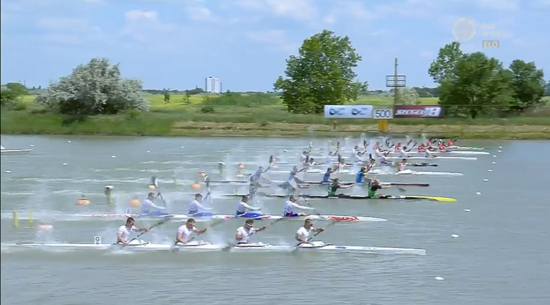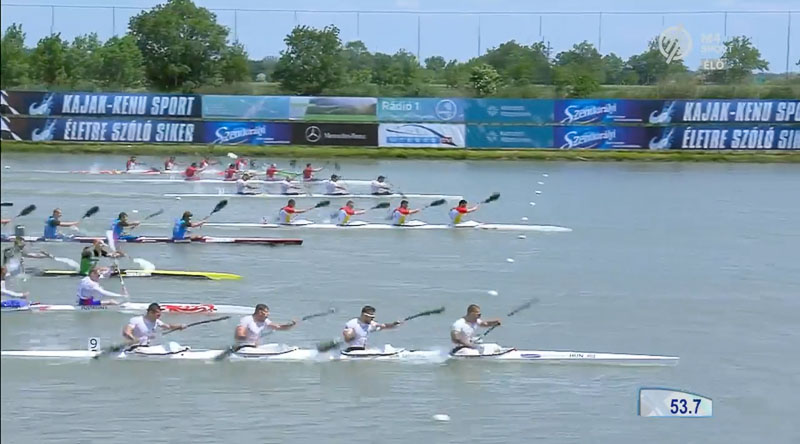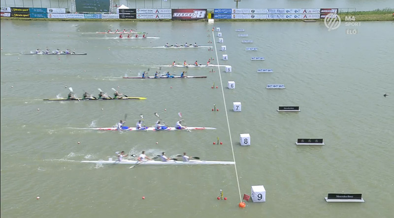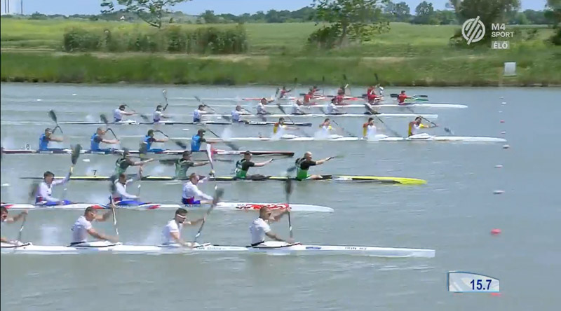 Pistiék nagyon jól kapták el a rajtot, talán a spanyolok után a legjobban. Félő, hogy egy túltolt rajt megbosszulja magát, de a szarvasi érdekeltségű egység 250-nél már egyértelműen vezetett. A komplett lelátó felállva figyelte a nagyon szoros befutót, ahol a spanyolok vitathatatlanul nyertek, a gép pedig a hármas pályán evező magyarokat hozta másodiknak. A lassítást követően a végleges eredménynél azonban már Kuli Pistiék kerültek az ezüstöt érő helyre, és kevesebb mint három tizeddel maradtak le az abszolút esélyesnek kikiáltott spanyol hajótól.