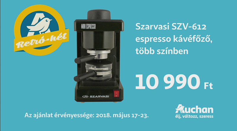 A verseny után a reklámblokkból kiderült, hogy május 17. és 23. között egy másik szarvasi is versenyben van a magyarok kegyeiért. Ő pedig régi ismerősünk, a Szarvasi SZV-612-es espresso kávéfőző.