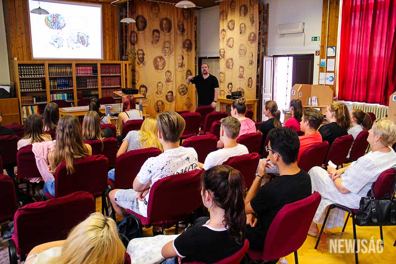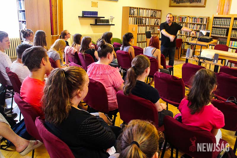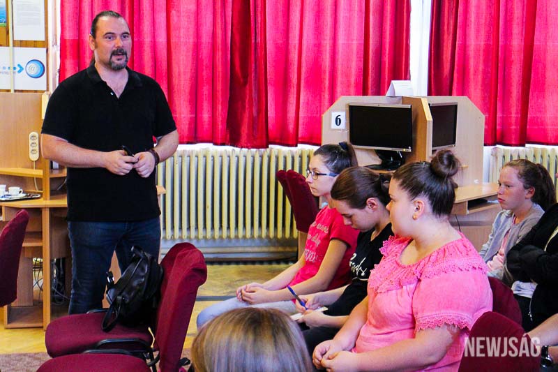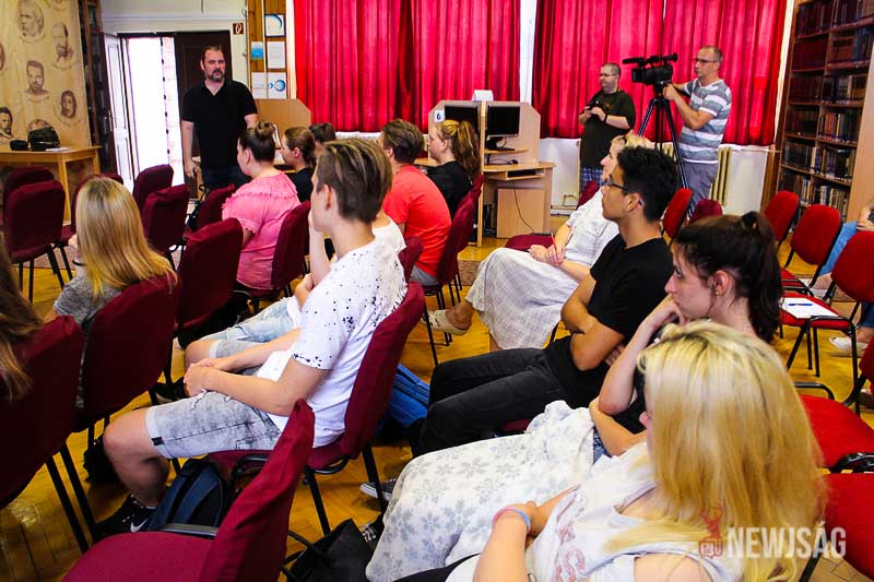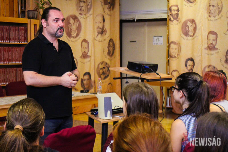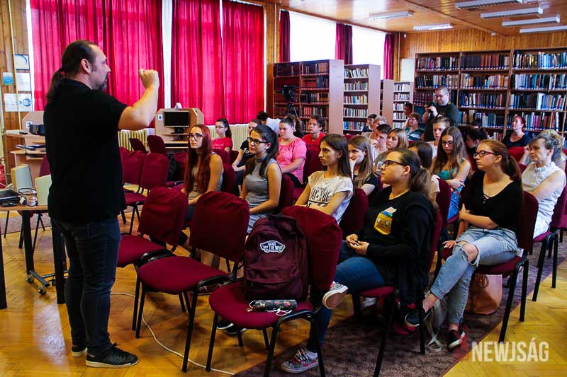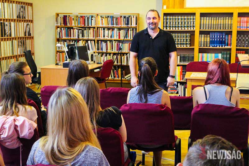A szerző június 13-án azt is bebizonyította, hogy a középiskolásokkal is megtalálja a közös hangot. A Városi Könyvtárban tartott előadásában az írásról, ill. az írásról IS beszélt. A hangsúly inkább az utóbbi módosítószócskán volt, hiszen rendkívül szuggesztív és magával ragadó stílusban nem csak a könyvekről beszél, hanem életviteli tanácsokat is elhint a gyerekek körében. Célja az olvasás megszerettetése, vagy ahogyan ő fogalmaz, értő olvasóvá nevelés, amit az írás mellett mára már feladatának tekint.