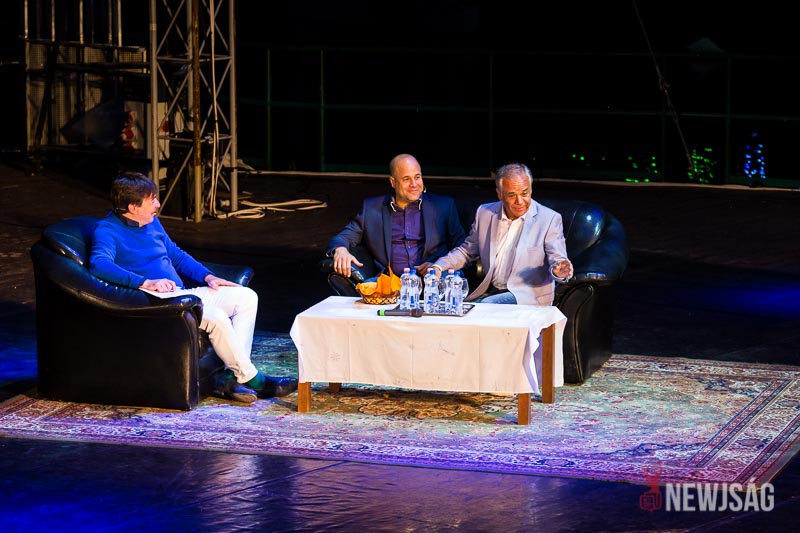 A két színművészt nem is nagyon kellett faggatni, sztoriztak és jeleneteket adtak elő. Mindketten a humort, a jószándékot, a másik megbecsülését, a kolléga segítését tartják fontosnak. Szó esett reklámfilmekben való szereplésről és korábbi TV felvételekről láthattuk apát és fiait (mindkettőt). A humor sohasem zárja ki a teljesítményt, sőt sokkal felkészültebbnek kell lenni váratlan helyzetekre is. Straub Dezső elmondta, akármilyen fáradt, a nézőre mindig oda kell figyelni, ha beszélgetni akar beszélgetni kell, ha autogramot kér, adni kell, mert ők a közönség, akiket meg kell becsülni, akiket meg kell hódítani nem csak a színpadon.