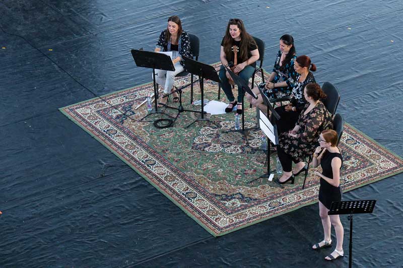 A 39 pályamunkából Tarsoly Krisztina készített dramaturgiát úgy, hogy mindegyik pályamunka elhangzott, ha nem is egészen, részletekben. Ezeket a sorokat olvasták fel, énekelték el a Jókai Színház színművészei: Komáromi Anett, Tarsoly Krisztina Sallai Zsóka, Lehoczki Orsolya és Szojka Cinthia. Komáromi Anett az egész este megálmodója, elindítója, lelke, segítőtársa Tarsoly Krisztina.