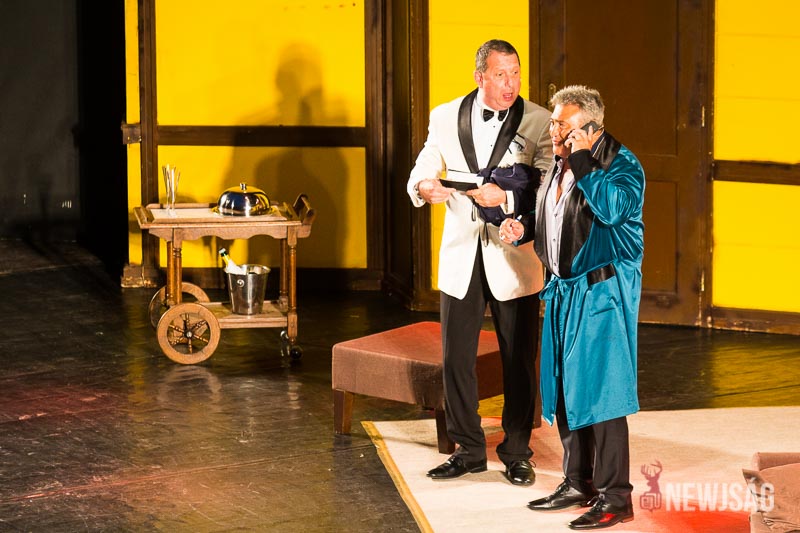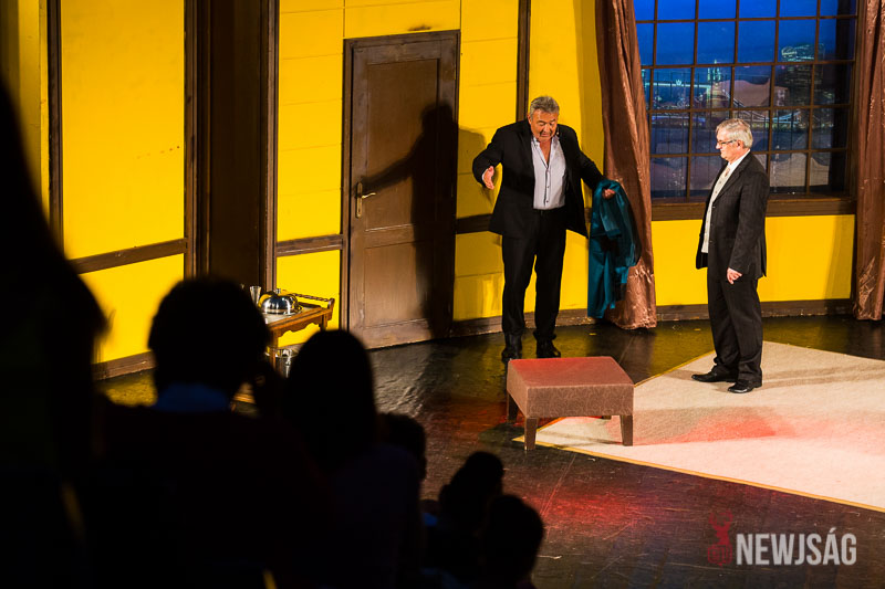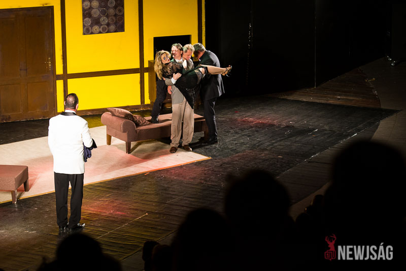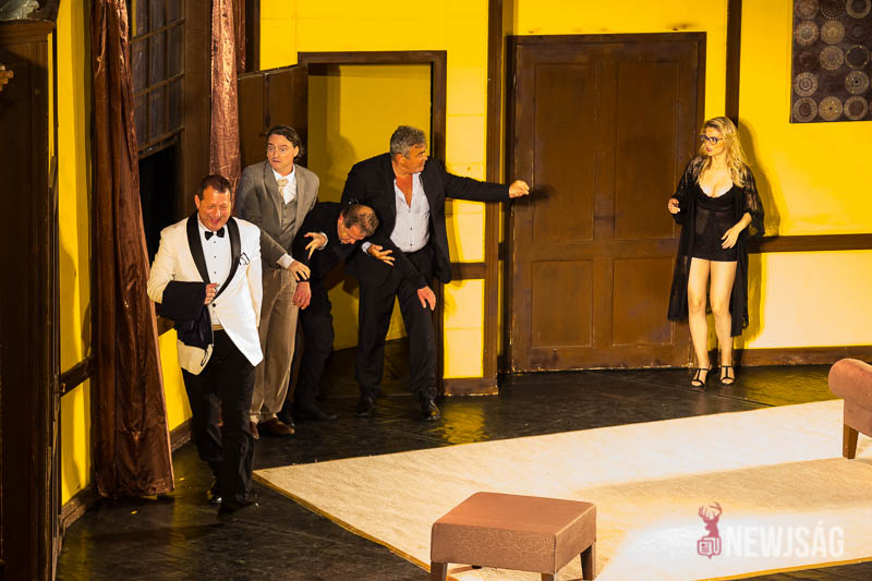 Szórakoztató bohózatot láttunk, nagyon jó színészi alakításokkal, akik tökéletesen hozták karakterüket, de mindenképpen ki kell emelni a két főszereplőt Gesztesi Károlyt és Beleznay Endrét, akik láthatólag nagyon jól érezték magukat a színpadon, könnyedén, bravúrosan alakították szerepüket. – Bár nem olvastam a darababot, de úgy gondolom, volt benne improvizáció Beleznay Endrétől, aki ártatlan képpel mondta a szövegeket. Még egy alakítást ki kell emelni, Schlanger Andrásét, aki emlékezetesen formálta meg a főpincért.