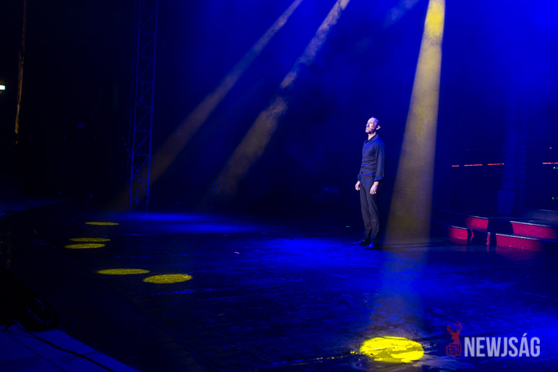 Isten rajta tartotta a szemét a CervinusFest nyitányán, hiszen előadás előtt nem sokkal elállt az eső, így, ha fél óra csúszással is, de elkezdődött az előadás. A bejáratnál, a szobrok mellett két hatalmas LED-falon köszöntik a Teátrum színművészei a nézőket. Belépve az „alagútba”, szőnyeggel borított, függönnyel díszített bejárat fogadta a közönséget.