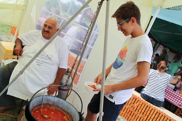 A hagyományos főzőversenyre ezúttal 13 csapat nevezett. Többségük klasszikus magyaros fogásokkal örvendeztette meg a zsűrit, néhányan azonban kifejezetten egészséges falatokat tálaltak. A Mozgáskorlátozottak Szarvasi Egyesületének békésszentandrási csoportja egy látványkonyhát is a sátor elé varázsolt, ahol többek között dinnyemalac, banándelfinek és cukkiniből készült bálnák hozták meg a kedvet a kóstoláshoz. Ráadásul székely káposztájuk egészen a második helyig repítette őket, bőrös malacuk tarhonyás körettel pedig különdíjat érdemelt ki.