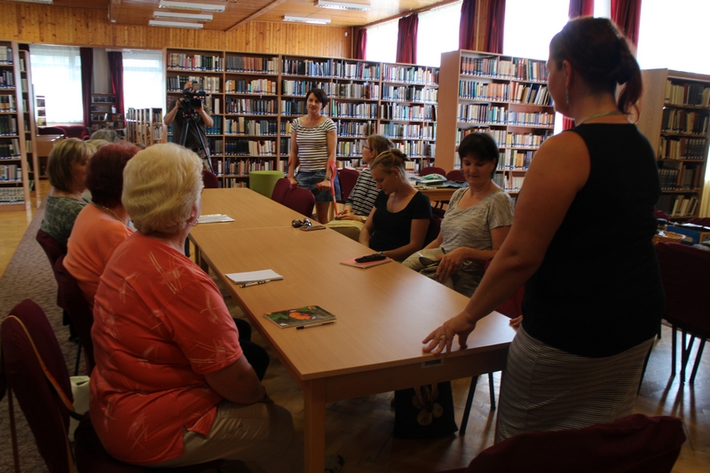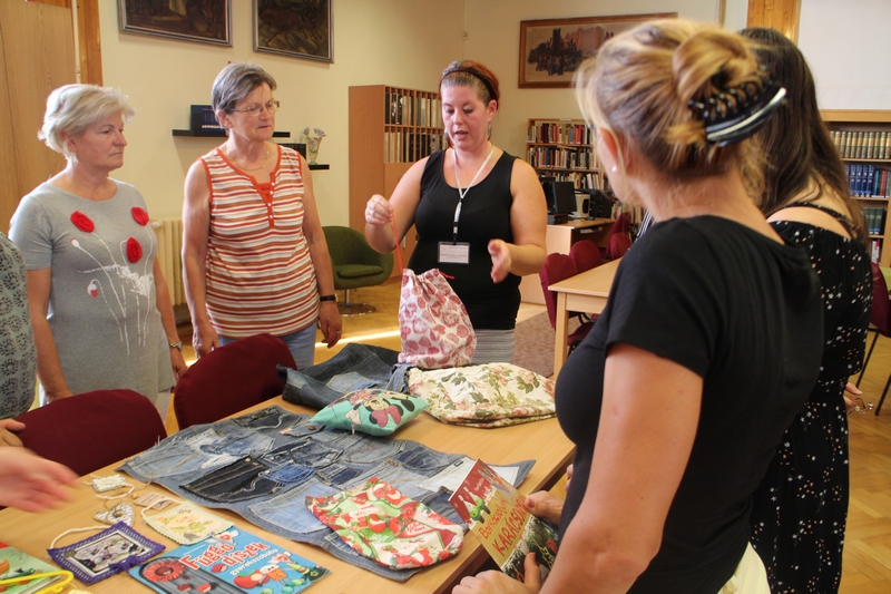 Az érdeklődőket Baginé Tóth Erika könyvtárvezető köszöntötte. Bevezetőjében elmondta, Városi Könyvtár 34,3 millió Ft-ot nyert egy EFOP típusú pályázaton, „Lehetőségek az egész életen át tartó tanulásra a szarvasi Városi Könyvtárban” címmel. Ennek keretében számos képzési, önképzési lehetőséget kínálnak. A Textil világa címmel indított foglalkozás is ehhez illeszkedik, amelynek nem csak a helyszínét biztosítják, hanem a szükséges eszközöket is be tudják szerezni.