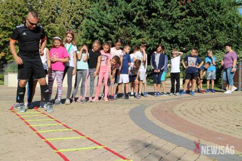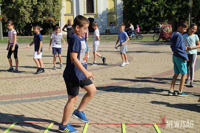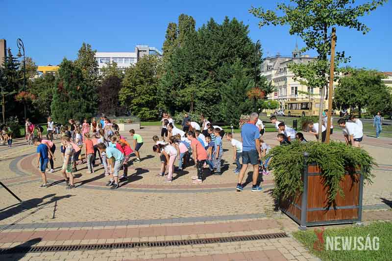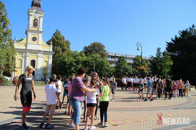 A kezdést 10 órára időzítették, amikorra a Benka Gyula Evangélikus Általános Iskolából, a Gál Ferenc Főiskola Gyakorlóintézményéből és a Szlovák Általános Iskolából több osztály futott be egyszerre. A tanulókat először Korbely Péter, a Fit Life Team Sportegyesület edzője izzasztotta meg, majd Piros Renáta zumbaoktatónak adta át a stafétabotot.