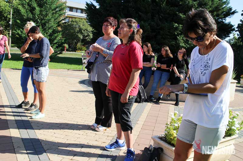 A folytatásban Gombár Zsolt néhány önvédelmi fogást mutatott be az egybegyűlteknek, akik lelkesen próbálták követni az utasításokat.