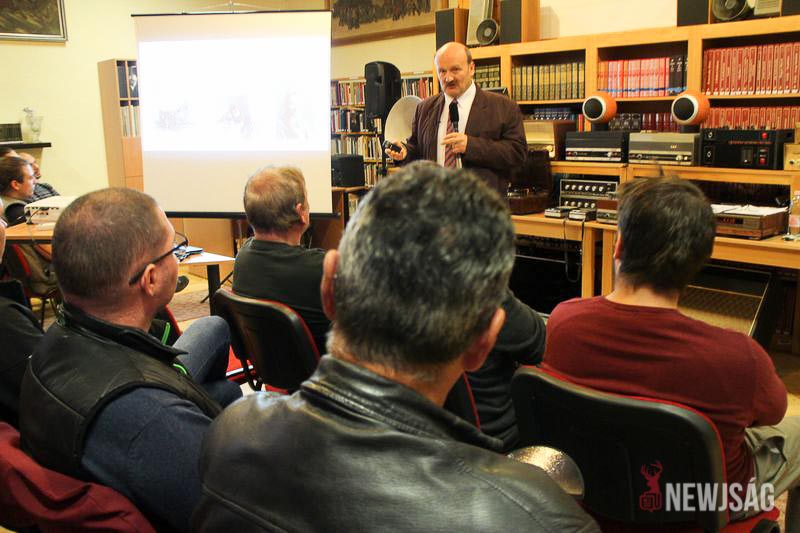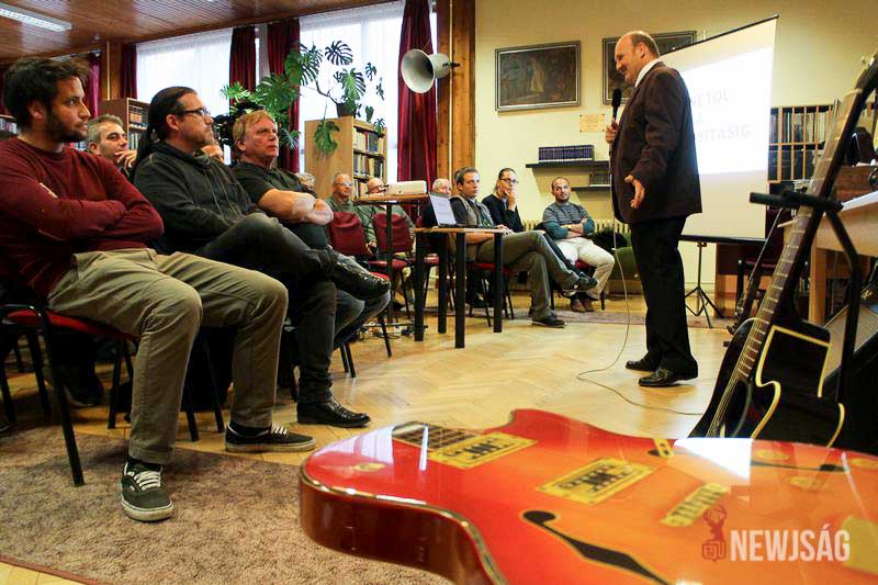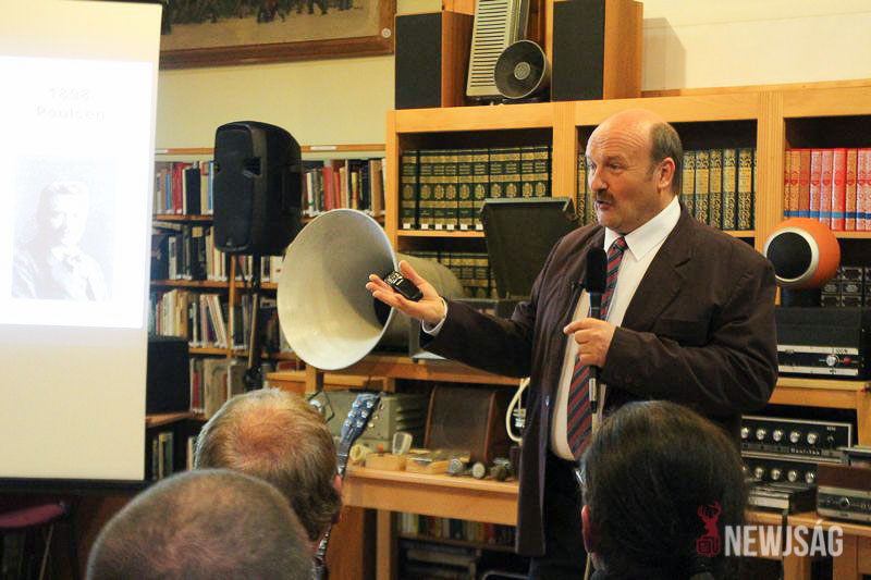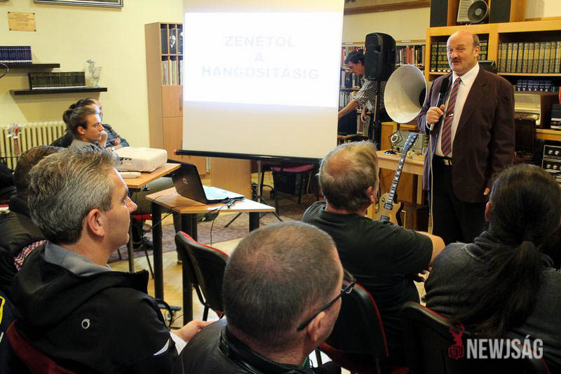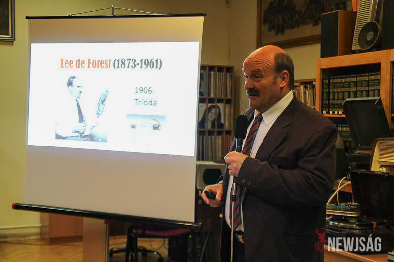 – 1906-ban készült el az első olyan alkatrész, amiből tudtak erősítőt építeni. Ez még nagyon kezdetleges volt, s az 1910-es évektől indult meg egy gyorsabb fejlődési folyamat. A hangszórók nagyon korszerűtlenek voltak. Az erősítők terén jobb volt a helyzet, minőség szempontjából sorban utánuk a mikrofonok következtek. Az erősítők az ’50-es évekre forrták ki magukat – ad egy rövid összefoglalót az előadásáról.