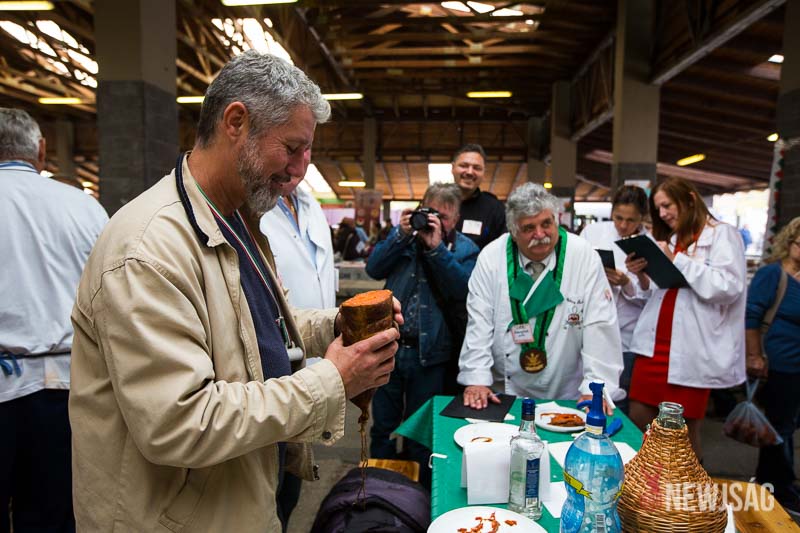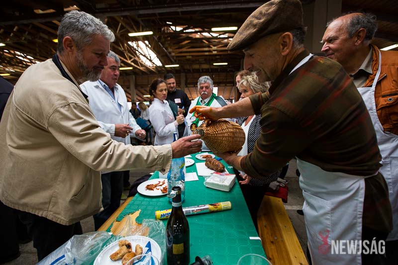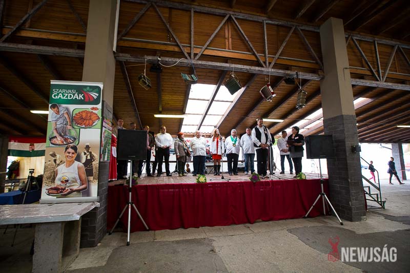– Itt mindig találok valami olyan ételt, ami a szívemnek nagyon kedves, most például a veteránjárműveseknél –akik stílusosan egy Volgával érkeztették meg a húst– volt egy olyan szalámi, aminek, ha úgy tetszik, semmi keresnivalója nincs a tradicionális szalámik között Szarvason, mert viszonylag kevés, vagy majdnem semmi paprikát tartalmaz, viszont szegfűbors van benne. Ez volt az egyik fordulópont a szalámibírálatok pillanatában, hogy egy minimum egy különdíjat kötelező nekik adni, zseniális, nagyon finom, nagyon jól kitalált szalámiról beszélünk, ami abban a sorban amit a tradicionális szalámik képviselnek, nem fog labdába rúgni, de itt igenis helye van, mert az ilyen versenyek amellett, hogy őrizzük a hagyományt, arról is szólnak, hogy merjünk újak lenni, merjünk felfedezni új ízeket, mert ha ez nem így lenne, akkor gyakorlatilag két étel lenne a világon – csapott át gasztrofilozofálgatásba a gasztroceleb Sági Szilárd.