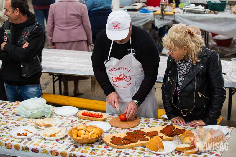 Várkonyi Tibor és motoros baráti társasága a csabai helyett a szarvasit választotta, mert mint mondták, itt mindenre van hely, kényelmesen meg tudnak csinálni mindent. Jó döntés volt, ugyanis 2018 kolbászkirálya éppen a hunyai Várkonyi Tibor lett tavalyi szárazkolbászával.