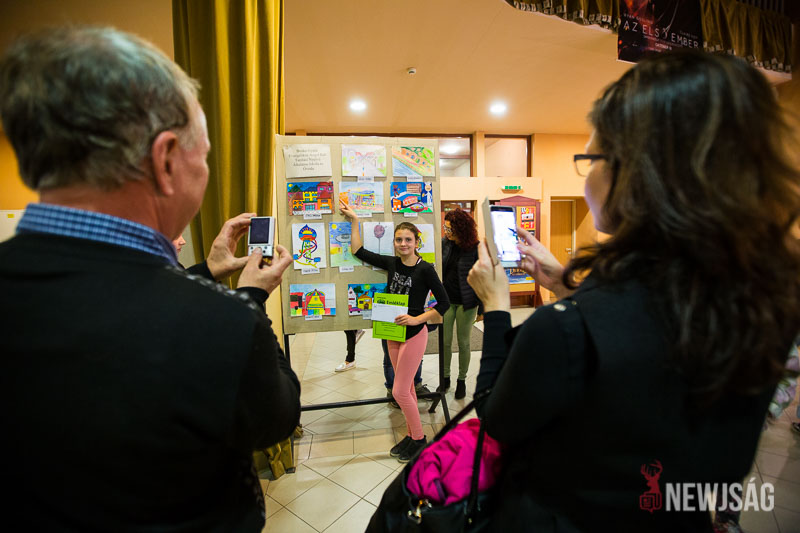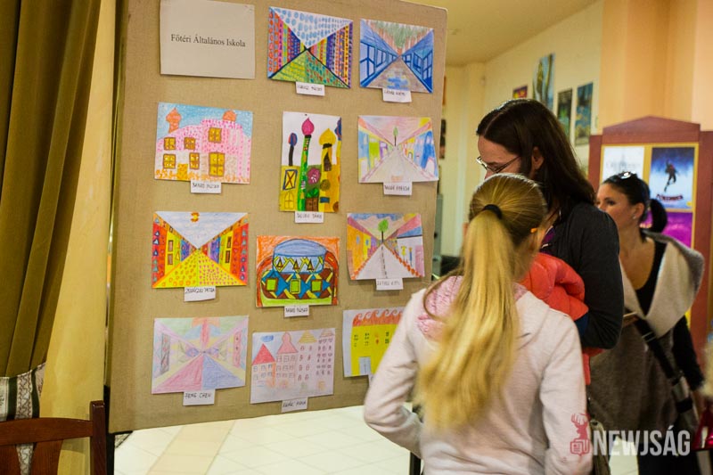 – A rajzok tömkelege mind színes. Úgy tűnik, hogy a gyerekek egy színes várost képzelnek el a mostani városunk helyett. Például egy templomot – az evangélikus templomról van szó – színesben álmodta meg Sárosi Márk, ami nekem nagyon tetszik mert nem a konténeres fákat rajzolta meg mellé, hanem egy magas, vastagtörzsű fasort végig a templom mellett. Minden ház színes, ahogy lehet látni a képeken, de még az emeletes lakásoknak is minden emelete más-más színű – folytatta már a megnyitón.