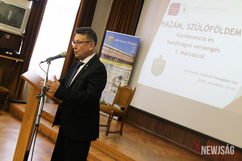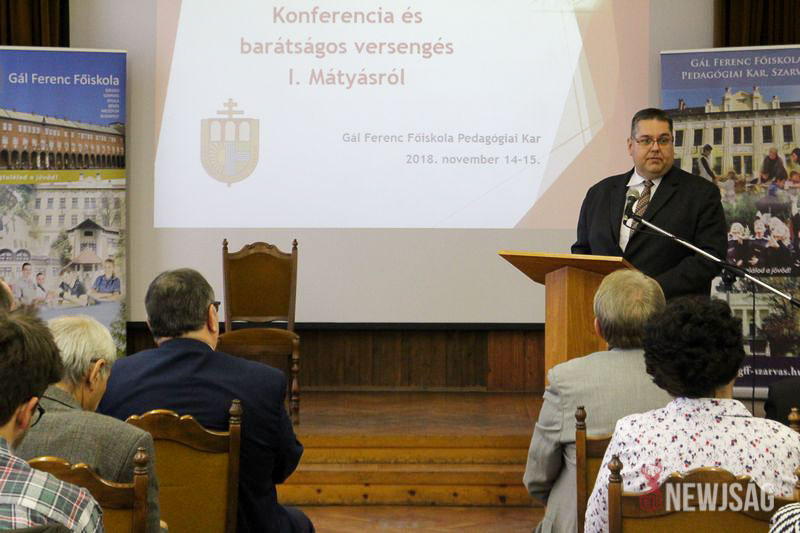 Babák Mihály polgármester köszöntőjében arról beszélt, hogy mindig is irigykedve tekintett Mátyás királyra, amiért kellő határozottsággal és bölcsességgel tudott igazságot tenni. Hangsúlyozta, Szarvas a történelmi Magyarország mértani közepén fekszik, ezért különösen oda kell figyelnie a határon túl rekedt honfitársakra. Köszönetet mondott ezért a missziójáért a Gál Ferenc Főiskola Pedagógiai Karának. Úgy érzi, ez a téma az elmúlt fél évszázadban háttérbe szorult, vagyis bőségesen van mit bepótolni.