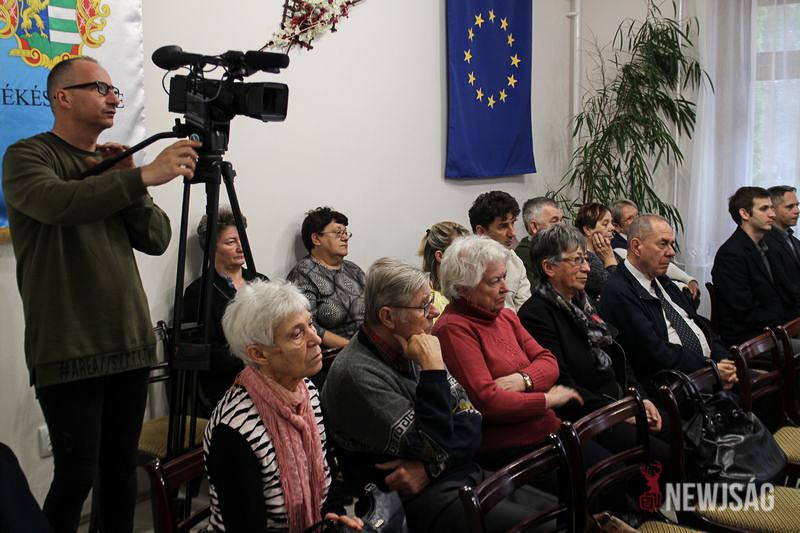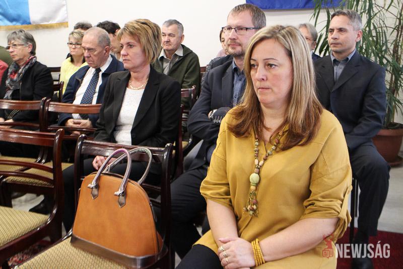 – Kettős érzés van bennem. Nagyon boldog vagyok, hogy a csabacsűdi önkormányzat megadta ezt a gyönyörű elismerést, ugyanakkor fáj a szívem, hogy most nem ő állhat itt helyettem. Tudom, hogy lélekben velünk van – köszönte meg elérzékenyülve a díjat Sindely Pálné, aki 47 éven keresztül volt társa jóban-rosszban. – Csodával határos módon lett kész a második kötet, és nagy elégedettséget érzett, amikor elhozta neki polgármester úr. Soha nem volt keserűség benne, mindig csak derű, mert nagyon szerette az itt élő embereket.