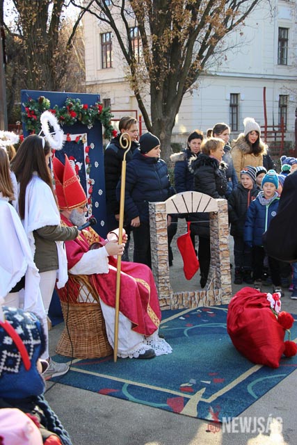 Az óvodásokat képviselve a Cseresznye és a Panda csoportos gyerekek énekkel és verssel köszöntötték a Mikulást hosszú útjának egyik legszebb állomásán. A melegszívű Mikulás megajándékozta a gyerekeket és ígéretet tett, hogy jövőre is találkoznak!