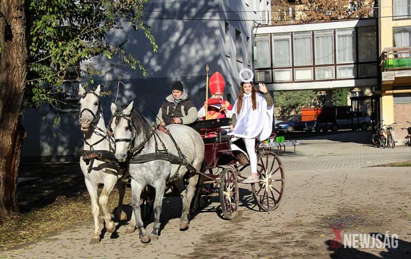 A várva várt Gyakorlós Mikulás idén is hintóval érkezett meg a szarvasi campus udvarára, ahol már izgatott, kíváncsi gyereksereg várta. A hideg idő ellenére a gyerekek vidáman énekelték a szebbnél, szebb hívogató dalokat, remélve, hogy minél hamarabb megérkezik a várva várt Mikulás. A hintó begördülésekor már jól látható volt, hogy idén is jók voltak a gyakorlós gyerekek, hiszen a Mikulás nem üres kézzel érkezett.