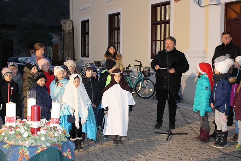 A megszokott nyüzsgés mellett, és azon túl- finom mézeskalács illat lengi be a GFF Szarvasi Gyakorlóintézményének termeit és folyosóját. Innenis-onnan is karácsonyváró ének hallik. Késő délután pedig megmozdul az egész gyerekhad, és néhány perc alatt tele lesz a mézeskalács kapunk alatti tér. A Szív hangjai Gyermekkórusunk énekét, Solcan Kármen hallgató kíséri gitárral. Horváth Z. Olivér evangélikus lelkész beszél halkan, elgondolkodtatóan a Szent Család szálláskereséséről… Szállást keresnek a mi szívünkben, otthonunkban is, hogy tisztán, és felkészülten várjuk Megváltónk érkezését.