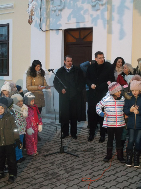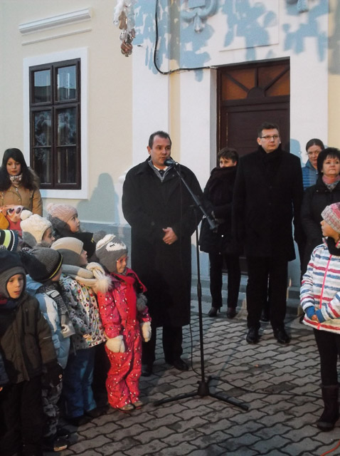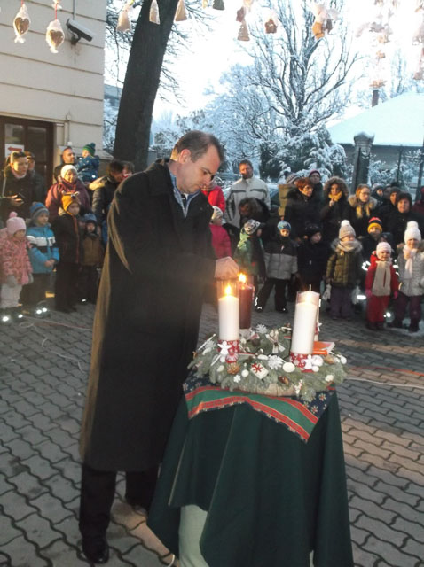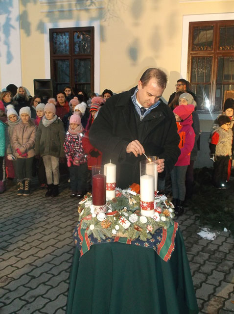 Hodálik Pál Szarvas Város Alpolgármestere az adventi koszorú gyertyáiról mond egy szép mesét. Meggyullad a harmadik gyertya.