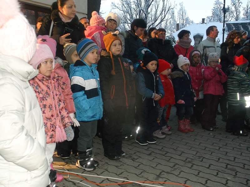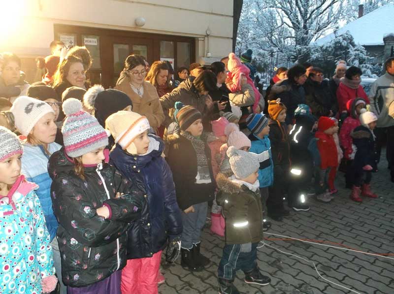 Felcseng egy gyermekhang. A kórus még csak halkan szól, majd egyre többen énekelnek. Intézményünk pedagógusai is, a gyerekek mögött.