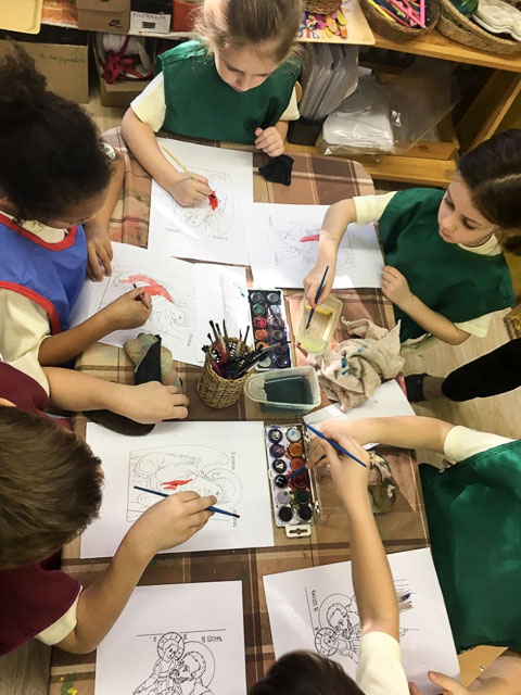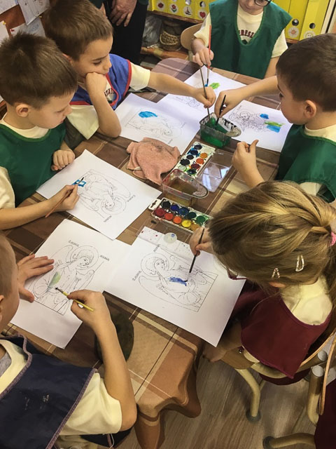 A legizgalmasabb mégis az volt, hogy egy kis betekintést kaphattak az ikonok alkotásába. Az alkotó eredeti ikonokról másolt vázlatokat hozott, melyeket a gyerekek kiszínezhettek, kifesthettek.