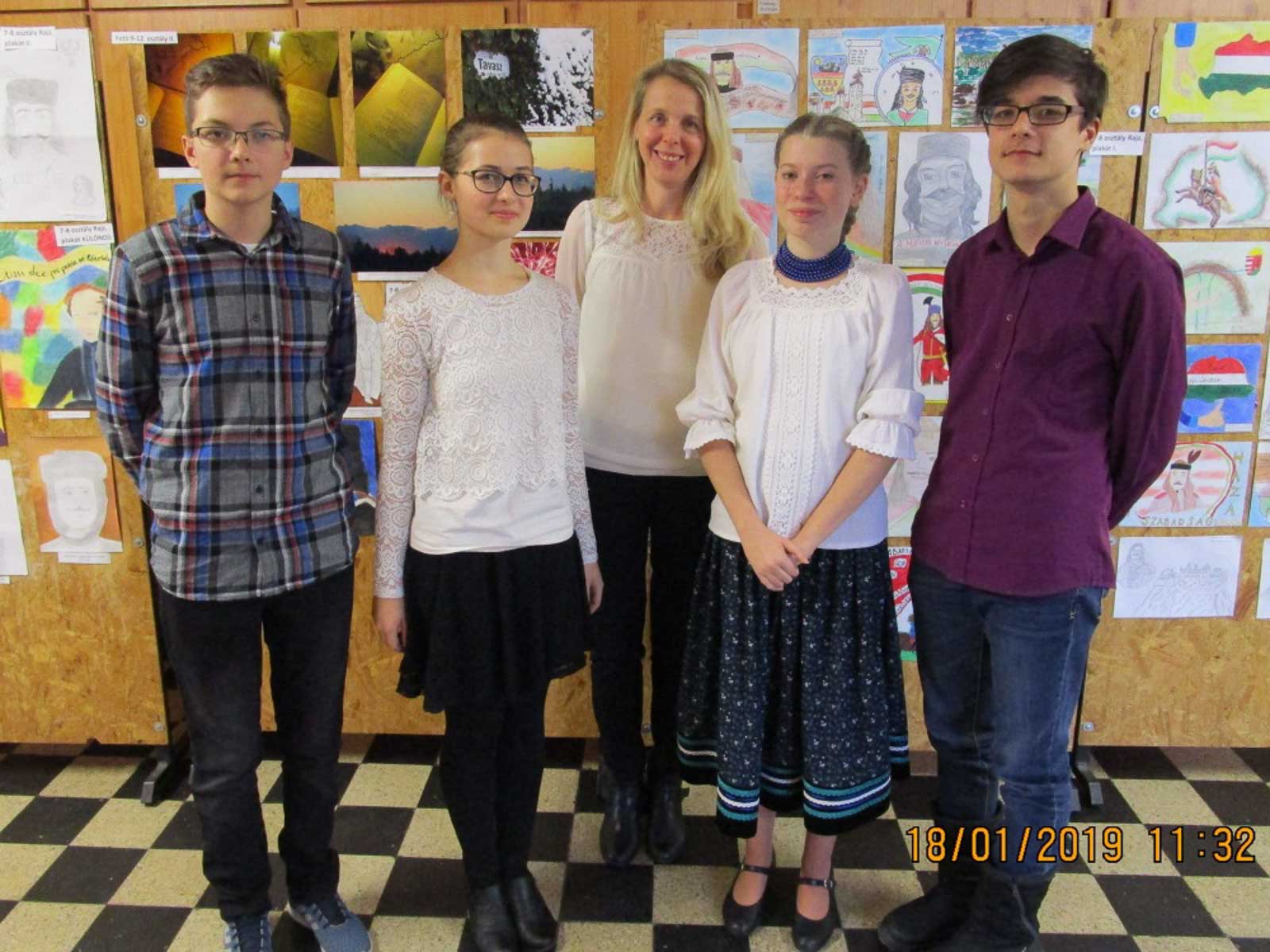 A szavalóversenyre minden résztvevőnek két költeménnyel kellett készülnie: Kölcsey Ferenc Himnuszával, valamint egy szabadon választott 19. századi magyar szerző ódájával. Máté Szabina mind a Himnuszt, mind pedig választott versét, Berzsenyi Dániel A magyarokhoz című költeményét nagyon szépen és kifejezően mondta el, elnyerve ezzel az 1. helyezést a 7-8. osztályosok korcsoportjában.