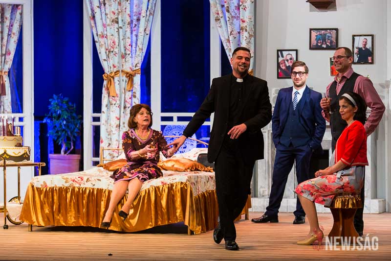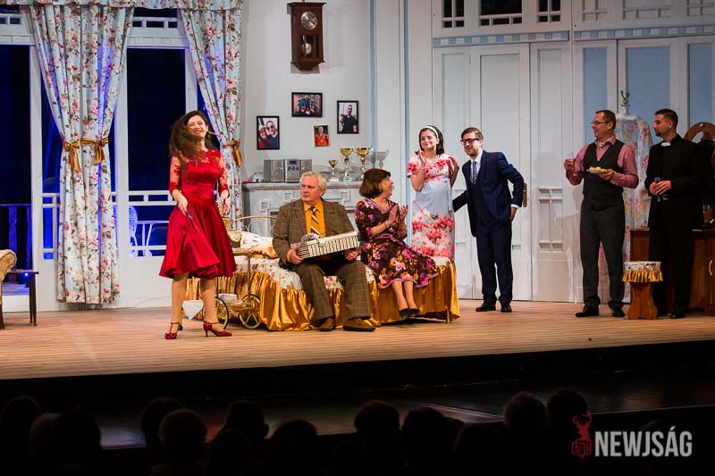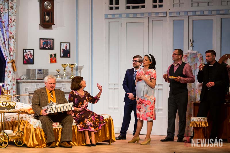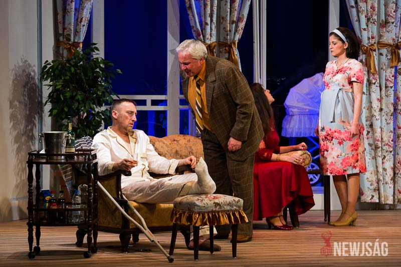 Polák Ferenc Tooker tiszteletesként játékos, jobb életre vágyó papot vitt színpadra, nagyon jól. Magyari László Baugh doktora visszafogottan, volt jelen a társaságban, beszéde érthető, tárgyszerű. Nagyon szimpatikus orvost láttunk alakításában. Balázs Henriett Sookey szerepében hol tálcákkal egyensúlyozott, hol ruhát, telefont vitt be, de főleg a gyerekekre vigyázott. Henriett aranyos, kedves, szerény figurát formált meg. Gooper és Mae gyermeki Sándor Noémi, Bagócsi Jázmin, Csapó Sára és Szemenyei Fanni, aranyosak, hangosak (ez volt a dolguk), vidámak voltak.