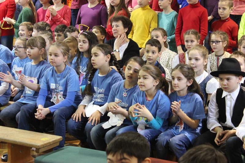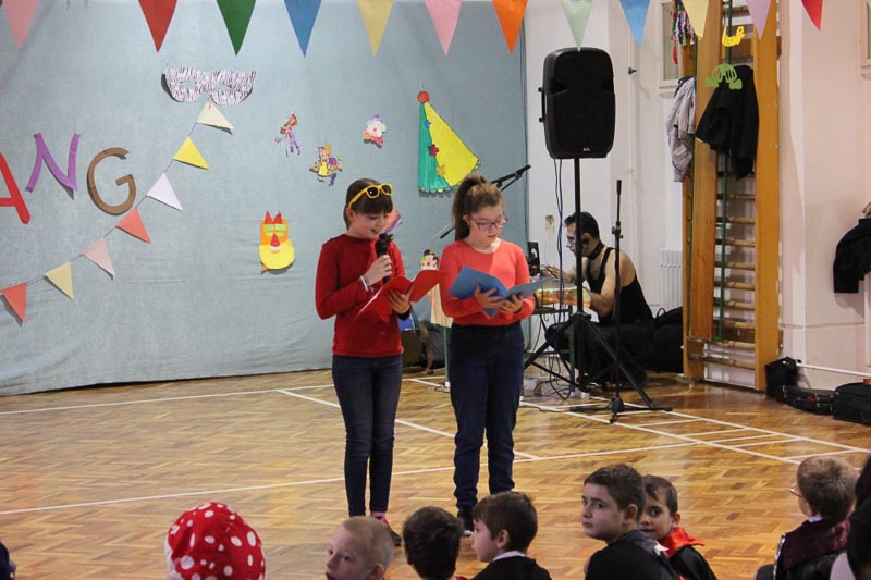 Elsőként az első évfolyamos, angol tagozatos gyerekek mutatták be vidám énekes, táncos produkciójukat, amit a Jégkorszak című rajzfilm inspirált.