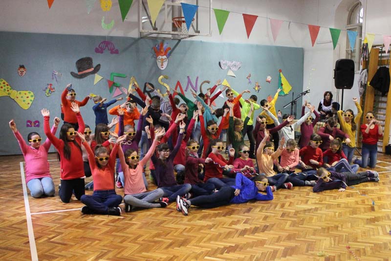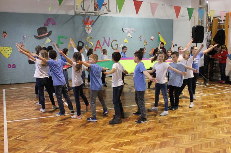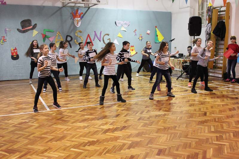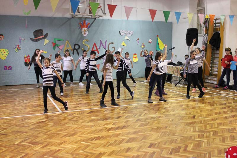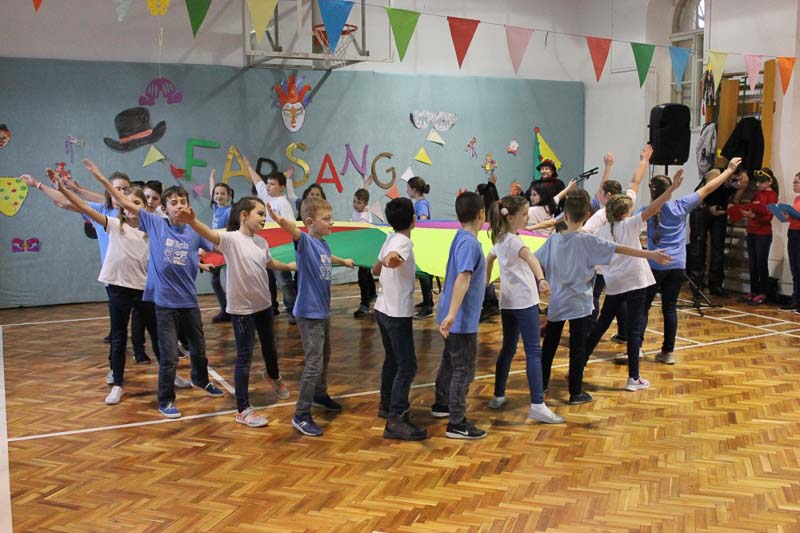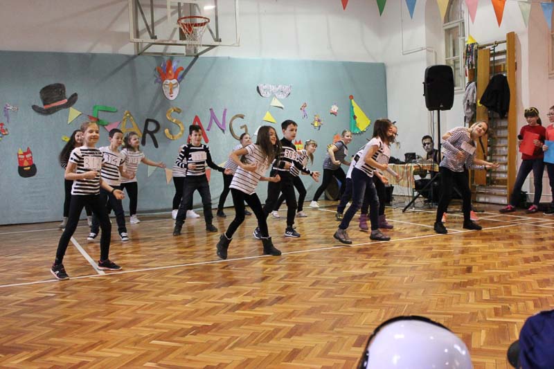 A 3. b osztályosok farsangi népi szokásokkal, kaputáró játékokkal és ugrótánccal csalogatták a tavaszt iskolánkba. Műsorszámukkal kedvet csináltak a táncoláshoz, így a farsangi mulatságot egy táncházzal zártuk, ahol a tanulók, pedagógusok együtt ropták a népzenére. Köszönjük szépen Oláh Márkónak, Árgyelán Kittinek és a Talléros együttesnek a közreműködést.