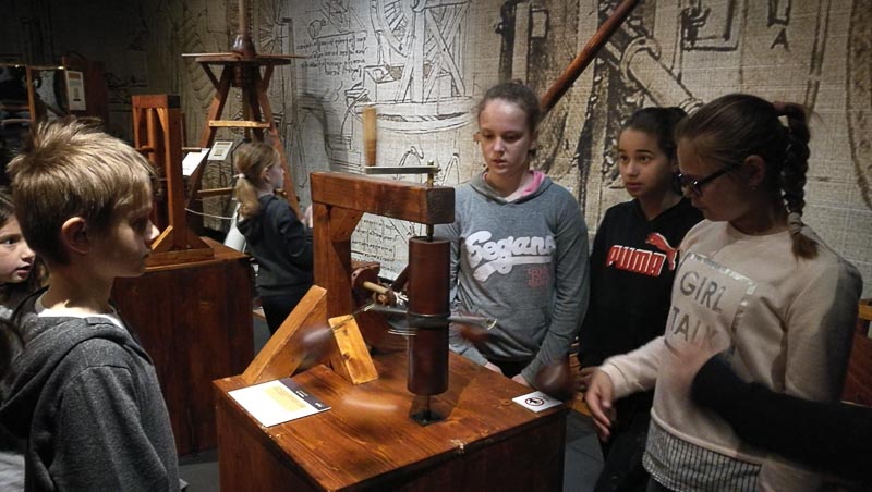 A Hunyadisuli környezet szakkörösei, a szakkör eddigi legérdekesebb kirándulásán vehettek részt. Budapestre utaztunk Leonardo da Vinci művész, feltaláló, zseni, interaktív kiállítására a reneszánsz mester halálának 500. évfordulóján. Leghíresebb műveinek reprodukciói mellett a kiállításon több tucat fából épült találmányával is találkozhattak a gyerekek, amelyek működését ki is próbálhatták vagy számítógépes szimulációk segítségével ismerhették meg.