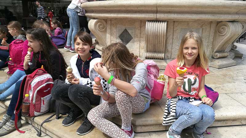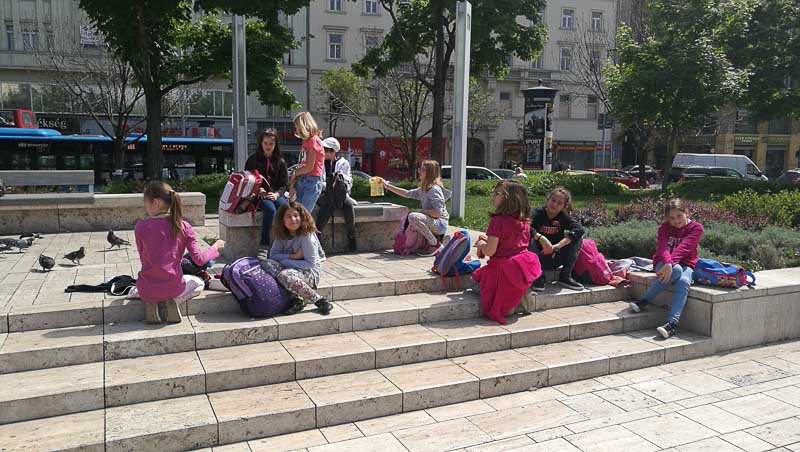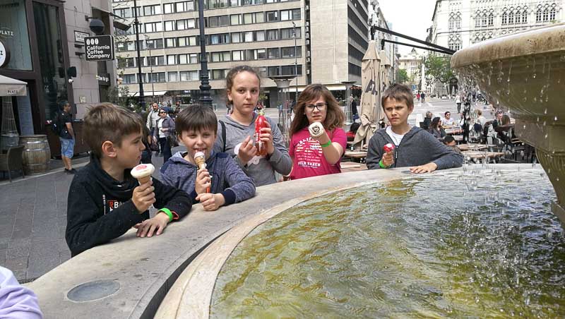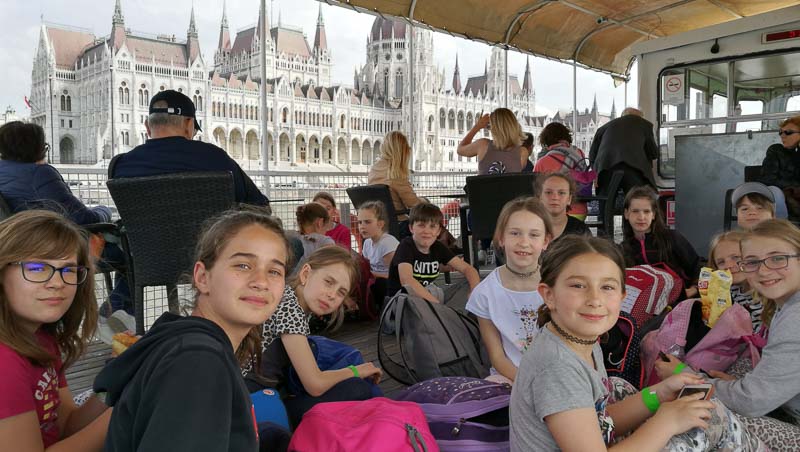 Budapest tömegközlekedésével ismerkedve elutaztunk a 3-as és a 4-es metrón a Gellért térre, ahonnan a Szabadság hídon át visszasétáltunk Pestre. Végig villamosoztunk a 2-es villamossal a Duna partján a Jászai Mari térre és ott hajóra szálltunk. A dunai hajóközlekedés gyakorlatilag egy sétahajózás budai és pesti panorámával. Mi a Nemzeti Színházig utaztunk ezen a csodálatos vízi úton.