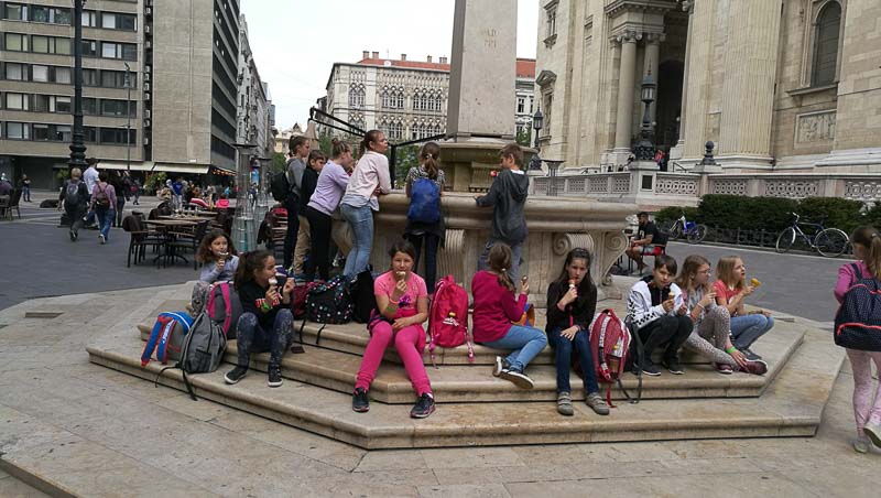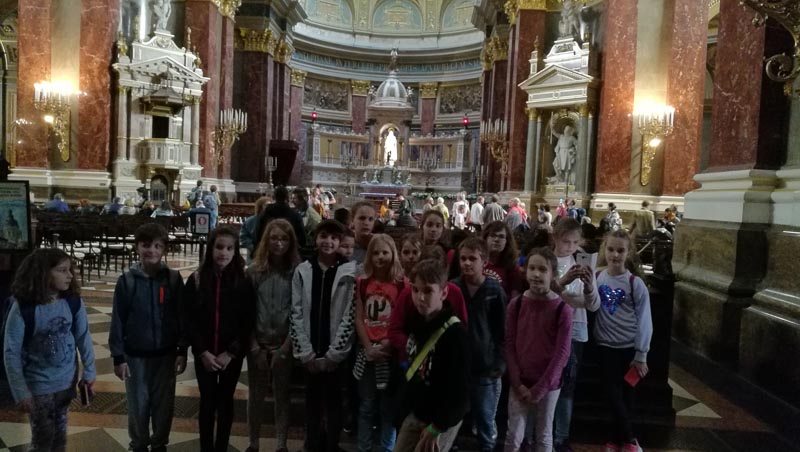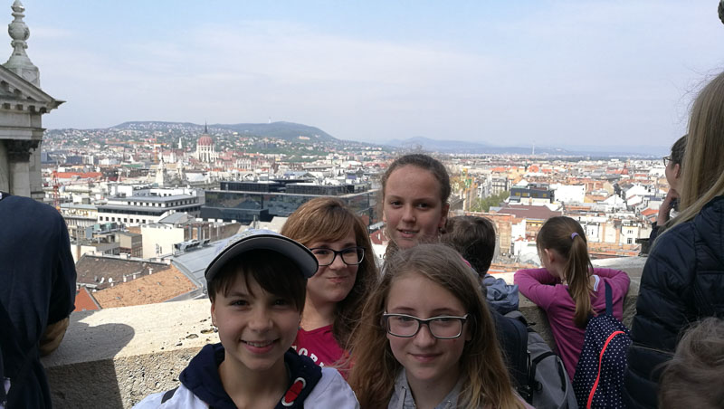 Miután minden eszközt kipróbáltunk átsétáltunk a Szent István Bazilikába majd a sok lépcső megmászása után a Panoráma kilátóból csodálhattuk meg Budapestet. Pihenésképpen rózsafagyit ettünk a Bazilika szomszédságában.