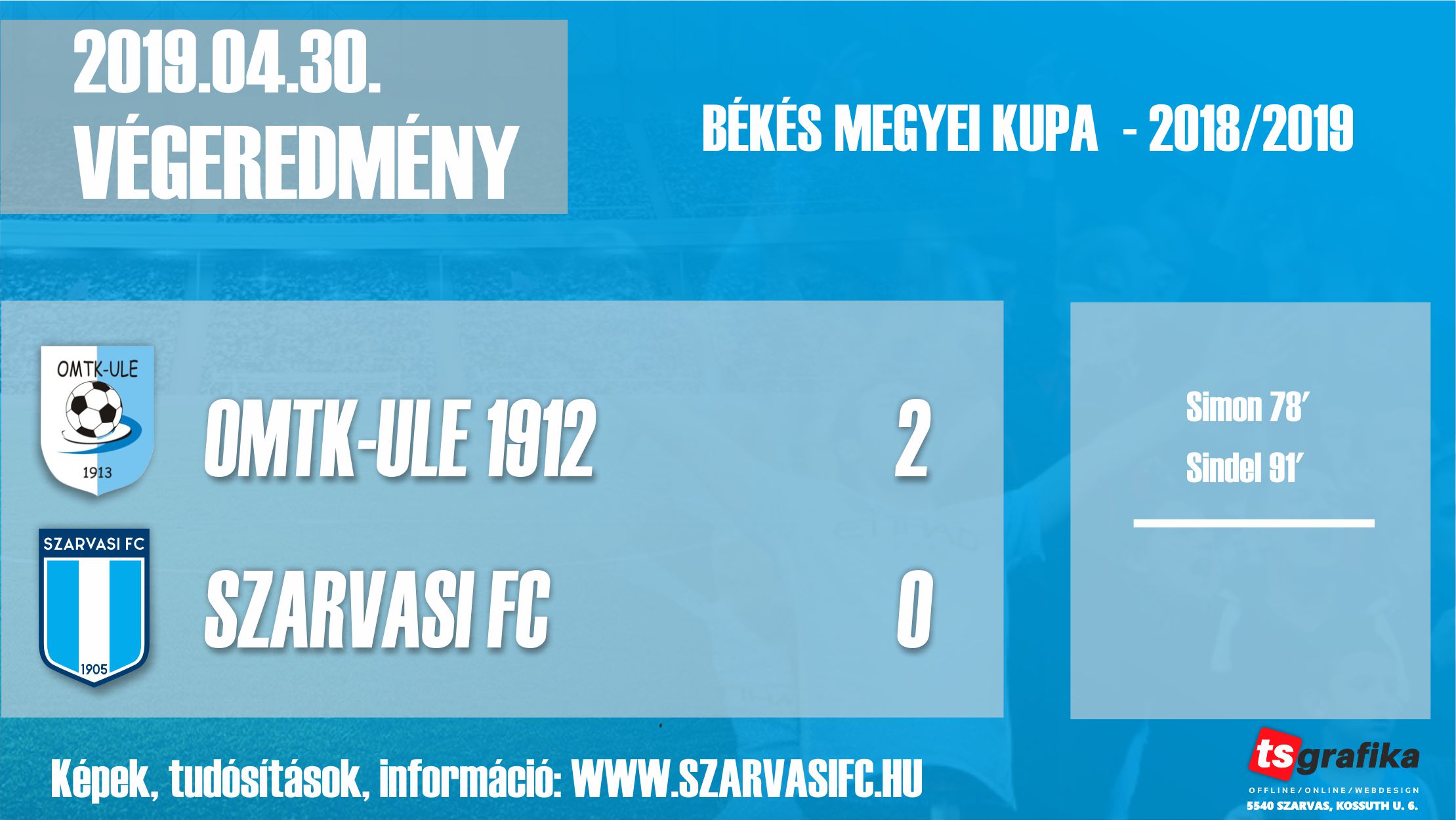 A második játékrészben csapatunk kockáztatott és támadólag lépett fel, próbálta eldönteni a találkozó végkimenetelét azonban a 72. percben egy kapu előtt kavarodás után Simon szerezte meg a vezetést a hazaiaknak, majd a 91. percben egy kontra után Sindel végérvényesen eldöntötte a mérkőzést.
