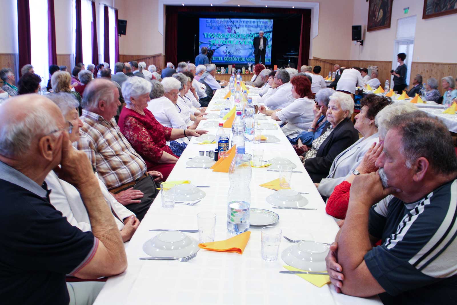 Benedek Erika köszöntője után a vendégekhez Oláh Géza, az egyesület elnöke szólt. Elmondta, köszönhetően a „bizalmiknak” minden évben egy nagyon színvonalas rendezvényt tudnak lebonyolítani. Hangsúlyozta, a 400-450 főt számláló tagságuk nagyon színes. Bár rájuk is igaz az egyre magasabb életkor, akadnak közöttük mozgásukban nagyon és kevésbé korlátozottak is. A nehezen mozgó vagy ágyhoz kötött tagtársaikat rendszeresen látogatják, és lehetőségeikhez mérten igyekeznek segíteni nekik.